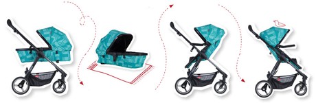 Она компактно складывается и не занимает много места. Все колеса снабжены амортизацией. Передние колеса поворотные с возможностью фиксации. Все колеса Мод изготовлены из специального EVA- сплава наподобие резины. Они мягкие, непрокалываемые и износостойкие. Ручка для родителей регулируется по высоте, а в корзине можно возить до 10 кг полезных вещей и игрушек.