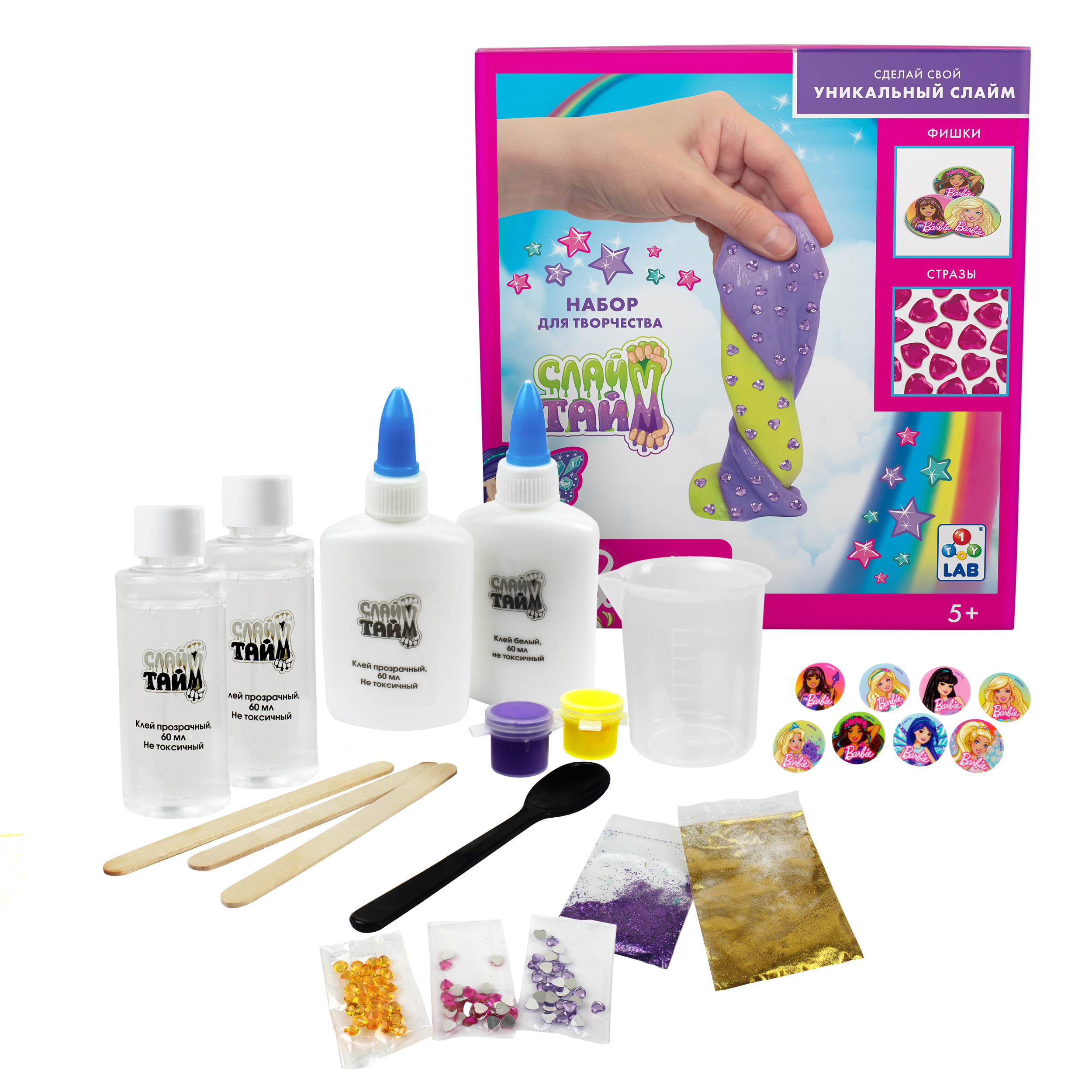 Набор для изготовления слайма с блесткам, фишками и игрушками 1TOY LAB