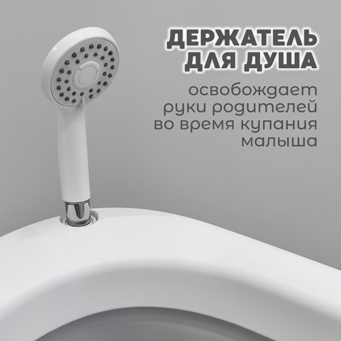 - Специальное отверстие для фиксации душевой лейки упрощает наполнение ванночки и сам процесс купания.