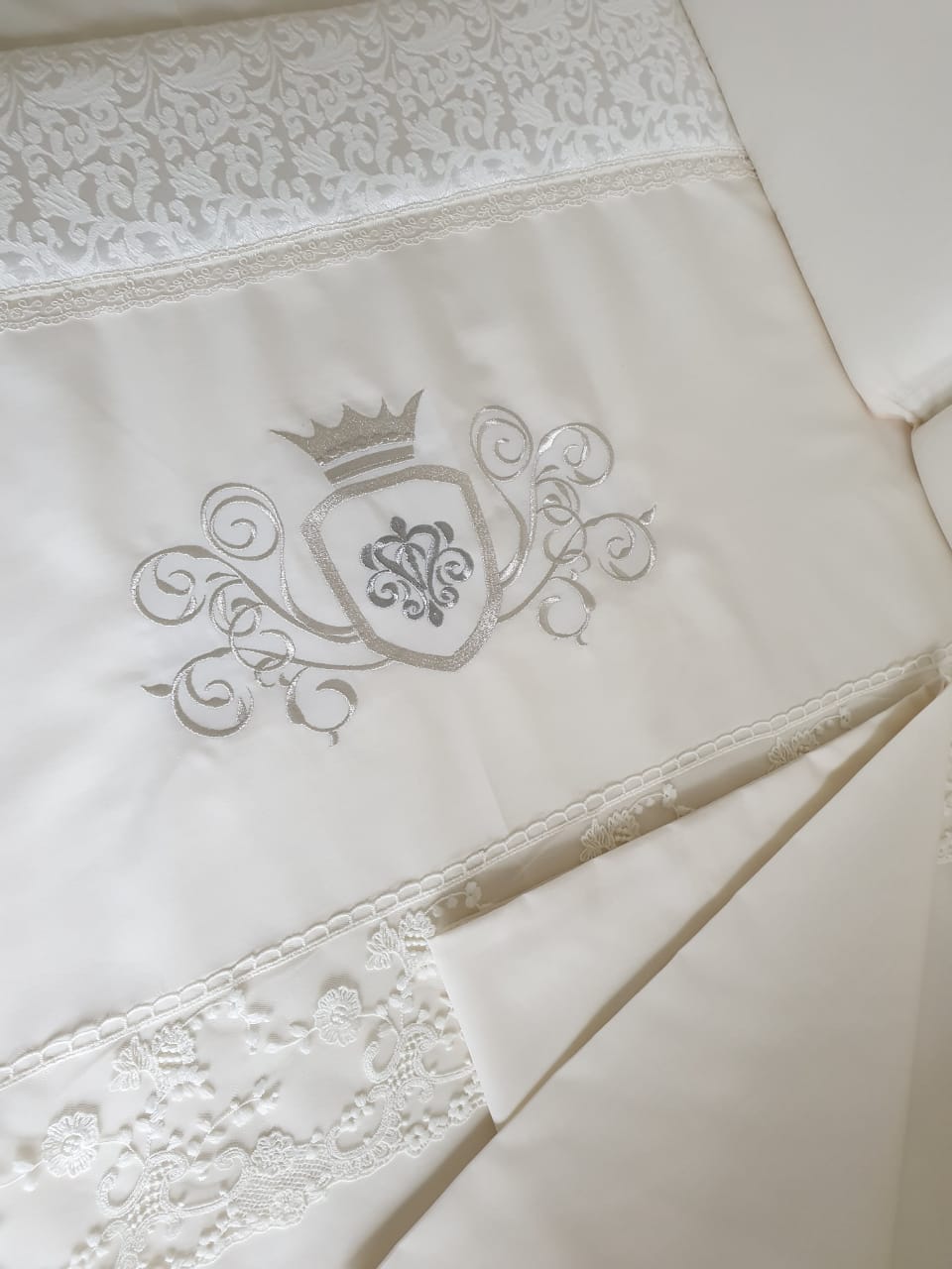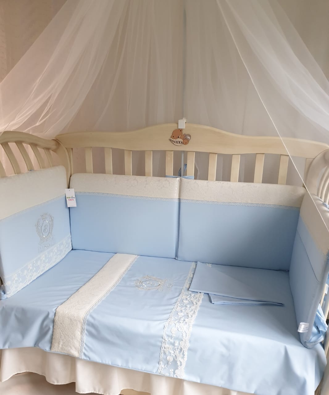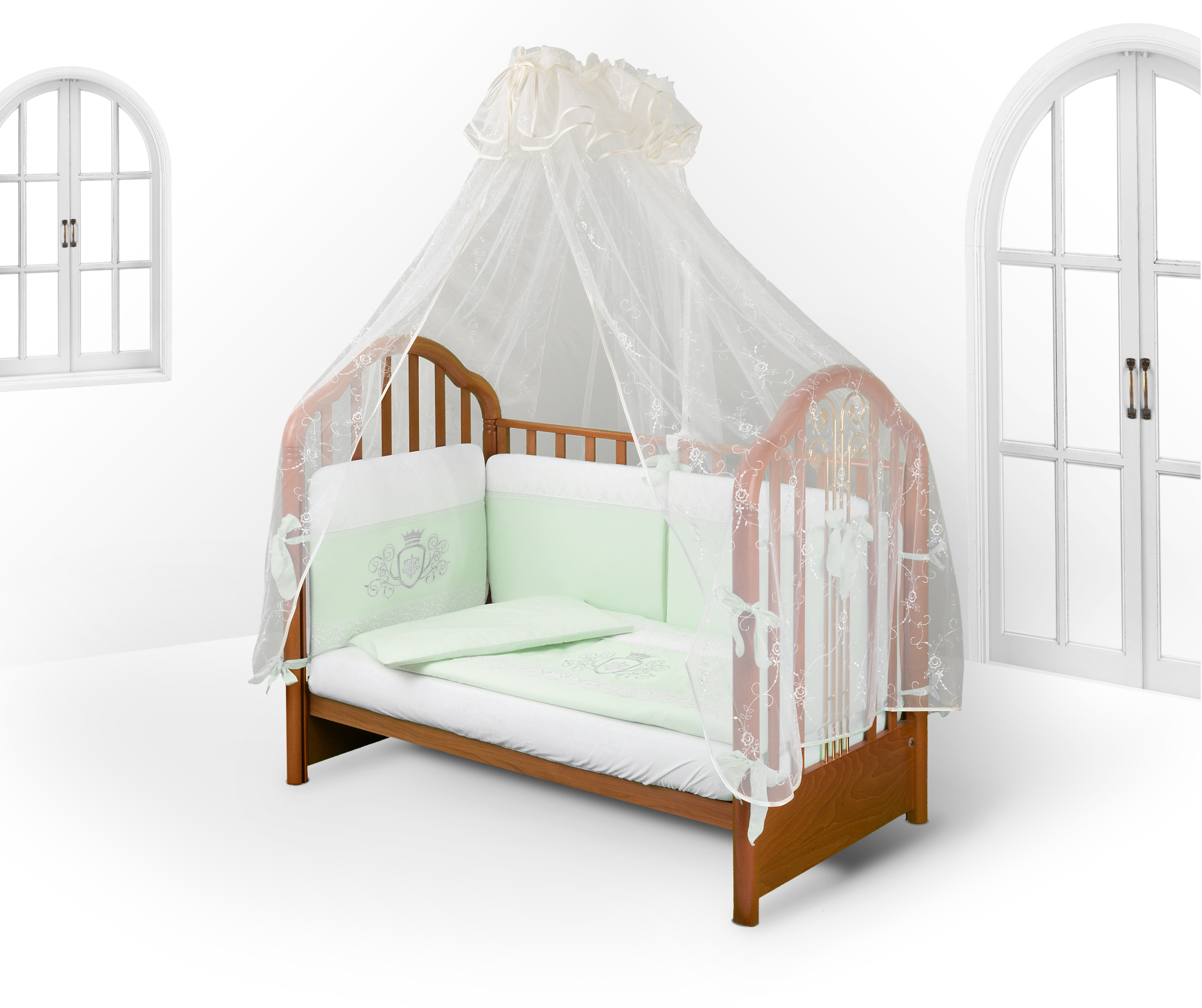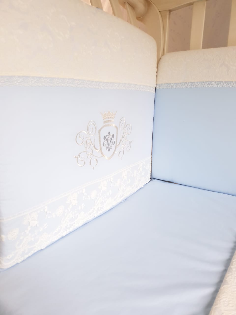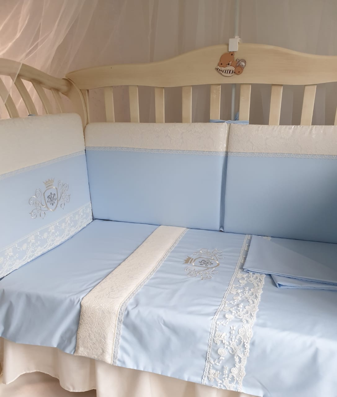 Набор в детскую кроватку для новорожденных Royal представлен в девяти вариантах расцветок на любой вкус. Удачно украшен художественной аппликацией в виде королевского герба, а также кружевного узора. Комплект очень нарядно выглядит, он может быть отличным подарком. Для удобства транспортировки упакован в сумку с ручками.