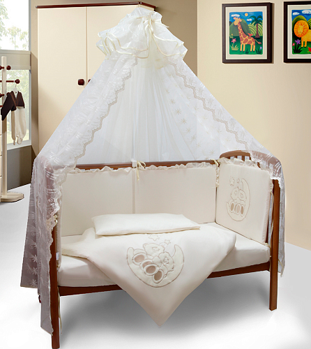 Набор в детскую кроватку Ecoline Мишки на Луне (эколайн) - очень качественный комплект в классическую кроватку для новорожденного. Сочетает в себе приятные нежные расцветки, милую аппликацию с детским персонажем и очень качественное исполнение. Бортики закроют малыша от сквозняков, создают в кроватке приятную атмосферу для сна и отдыха.