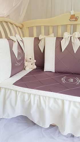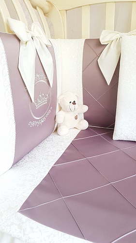 Набор в кроватку для новорожденных Ecoline Franchesko (эколайн франческо) - качественный комплект из 6 бортиков и постельных принадлежностей. Размер комплекта можно выбрать в зависимости от размеров вашей кроватки: 120х60 см, 125х65 см, 140х70 см. Весь набор выполнен из премиум сатина и отличается высоким вниманием к каждой детали. На бортиках чехлы снимаются для стирки.