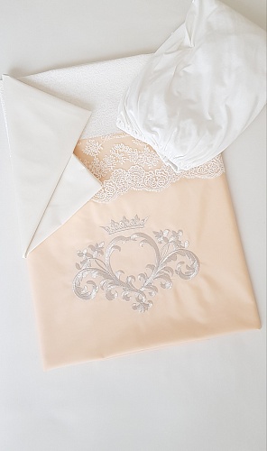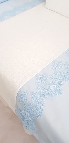 - На бортиках и на пододеяльнике вышивка и нежные кружева.