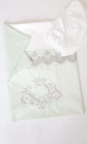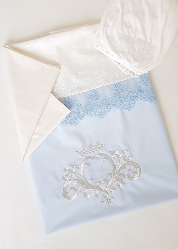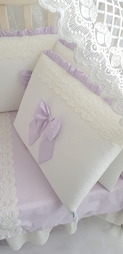 В комплект входят бортики по периметру всей кроватки, одеялко и подушечка для новорожденного. Наволочка и пододеяльник прекрасно дополняют бортики, и вся кроватка выглядит очень нарядной.