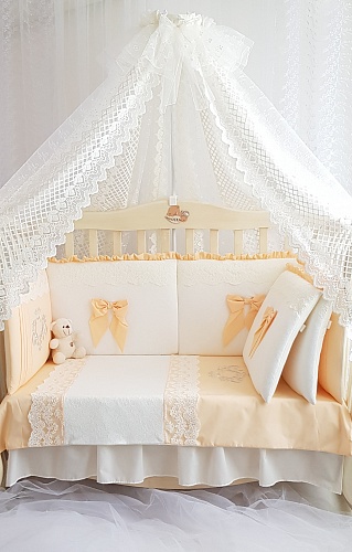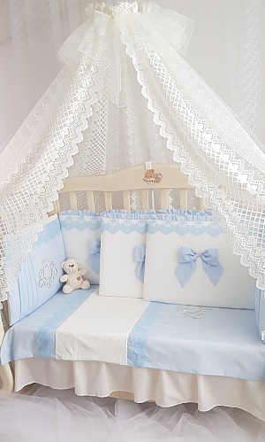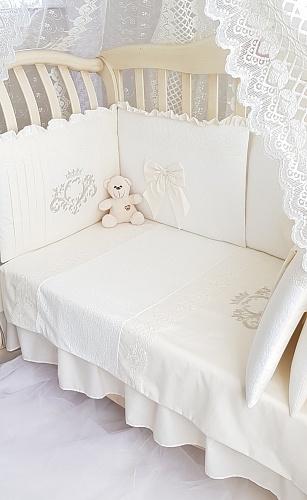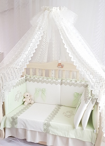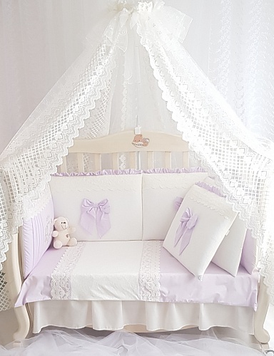 Этот комплект очень мягкий и нежный. Он не только создаст прекрасную атмосферу для сна, но и защитит малыша от соприкосновения с кроваткой, от сквозняка, от излишнего света.