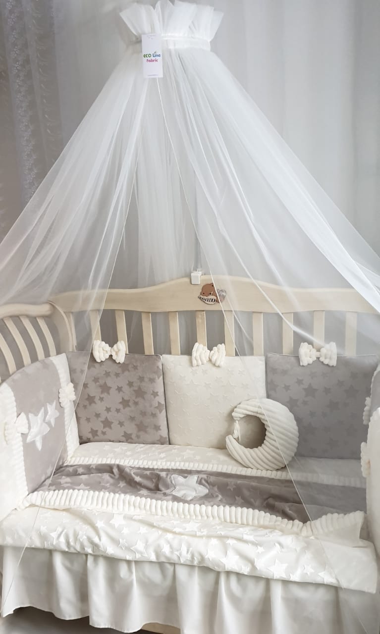 Набор в кроватку для новорожденных Ecoline Плюш (эколайн) - красивый и нежный комплект для круглой, овальной или классической кроватки. Материал бортиков гипоаллергенный плюш. Такие бортики смотрятся очень воздушно, а на ощупь очень мягкие. Это прекрасное решение для новорожденного малыша.