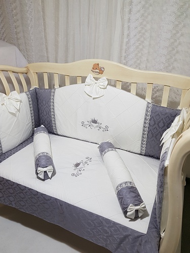 - Комплект создан для кроваток, модель которых повторяет форму дивана.