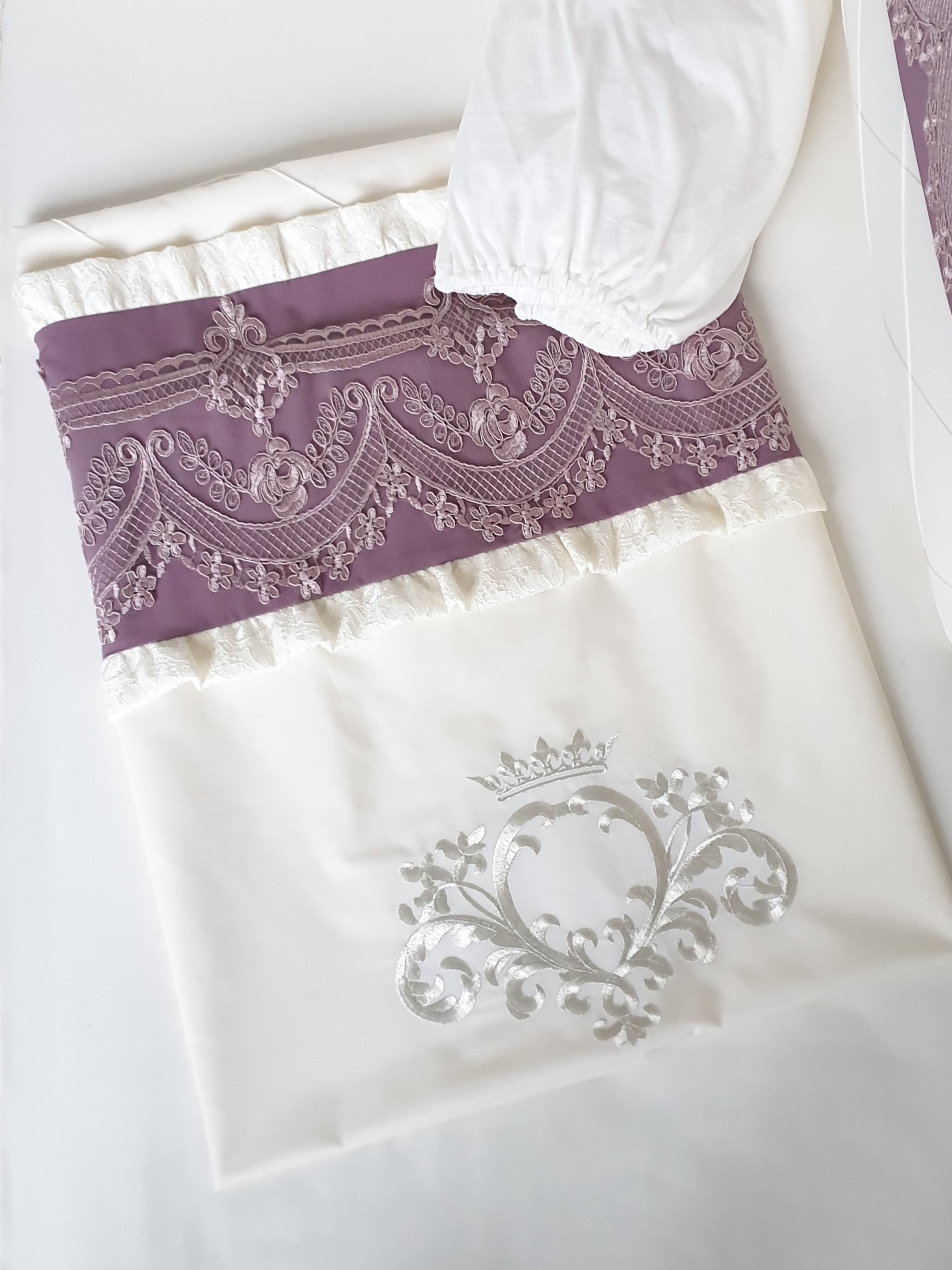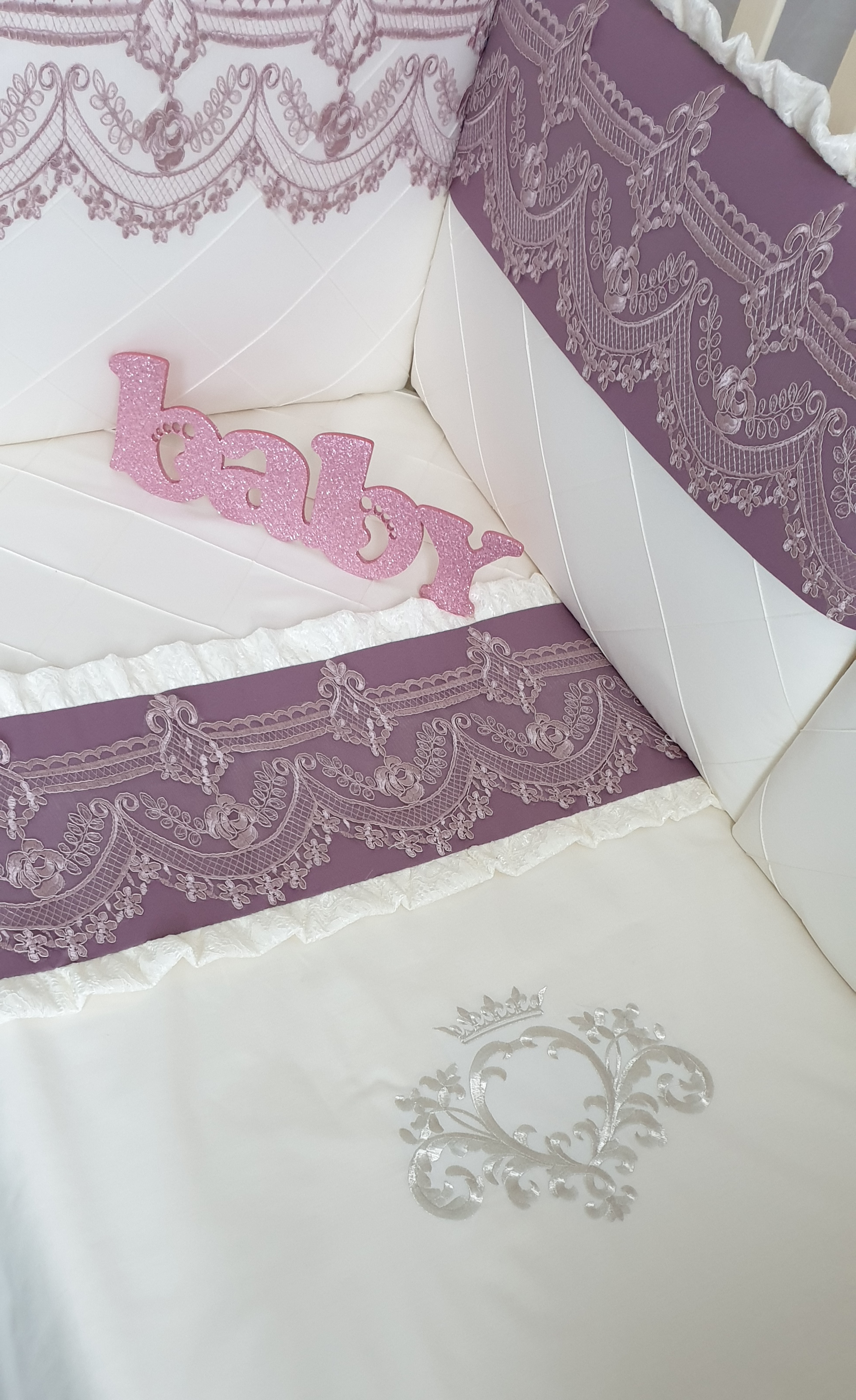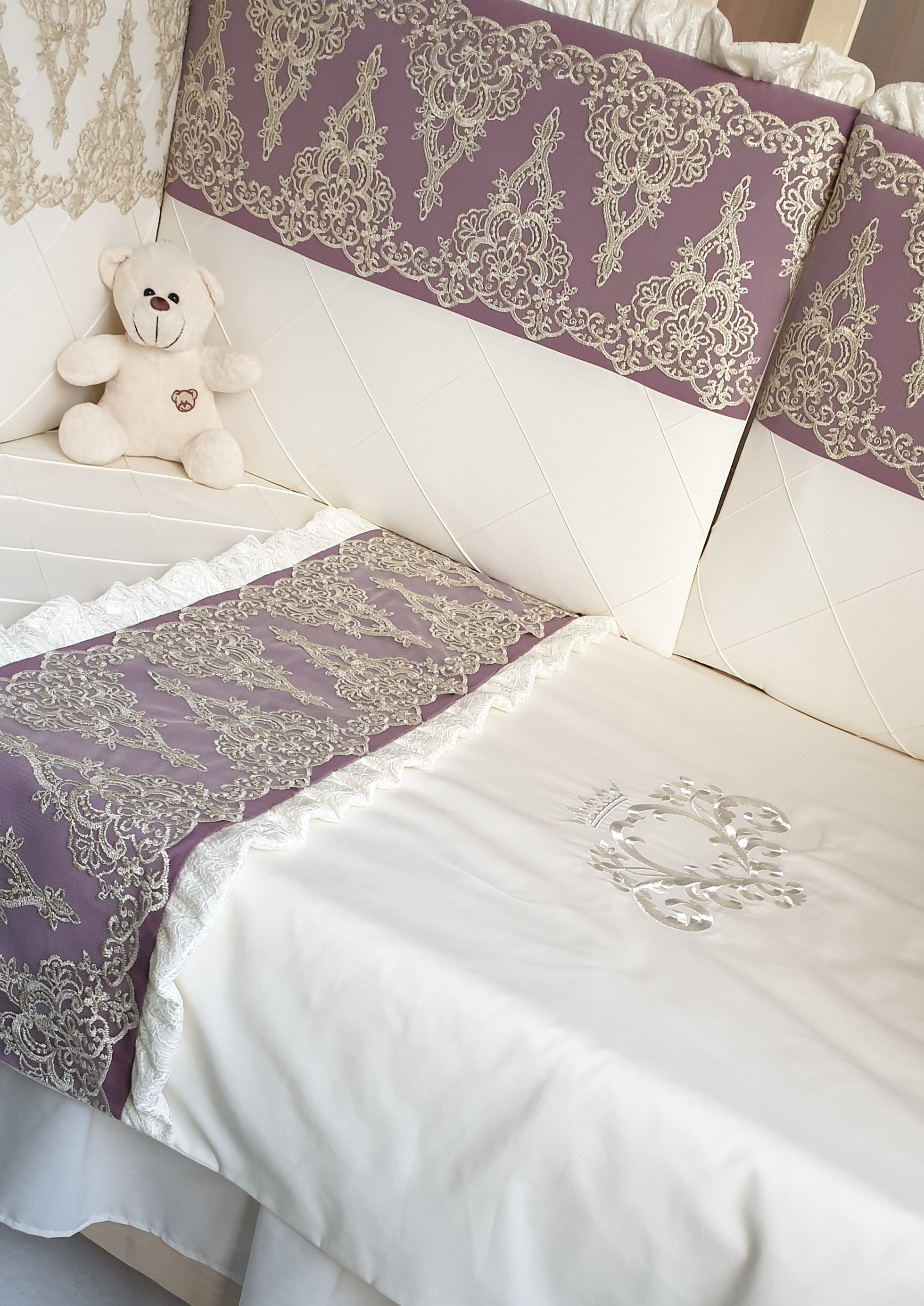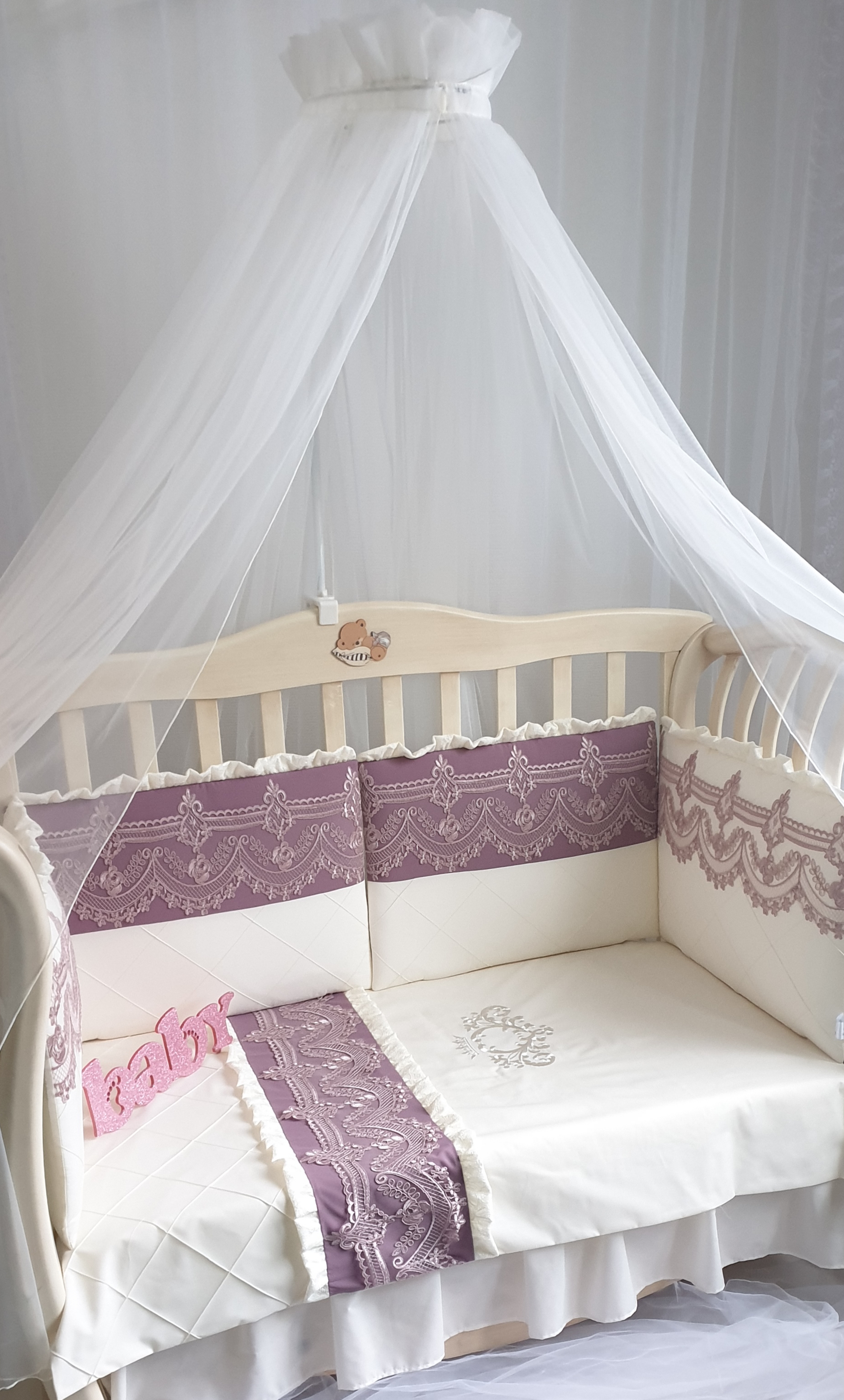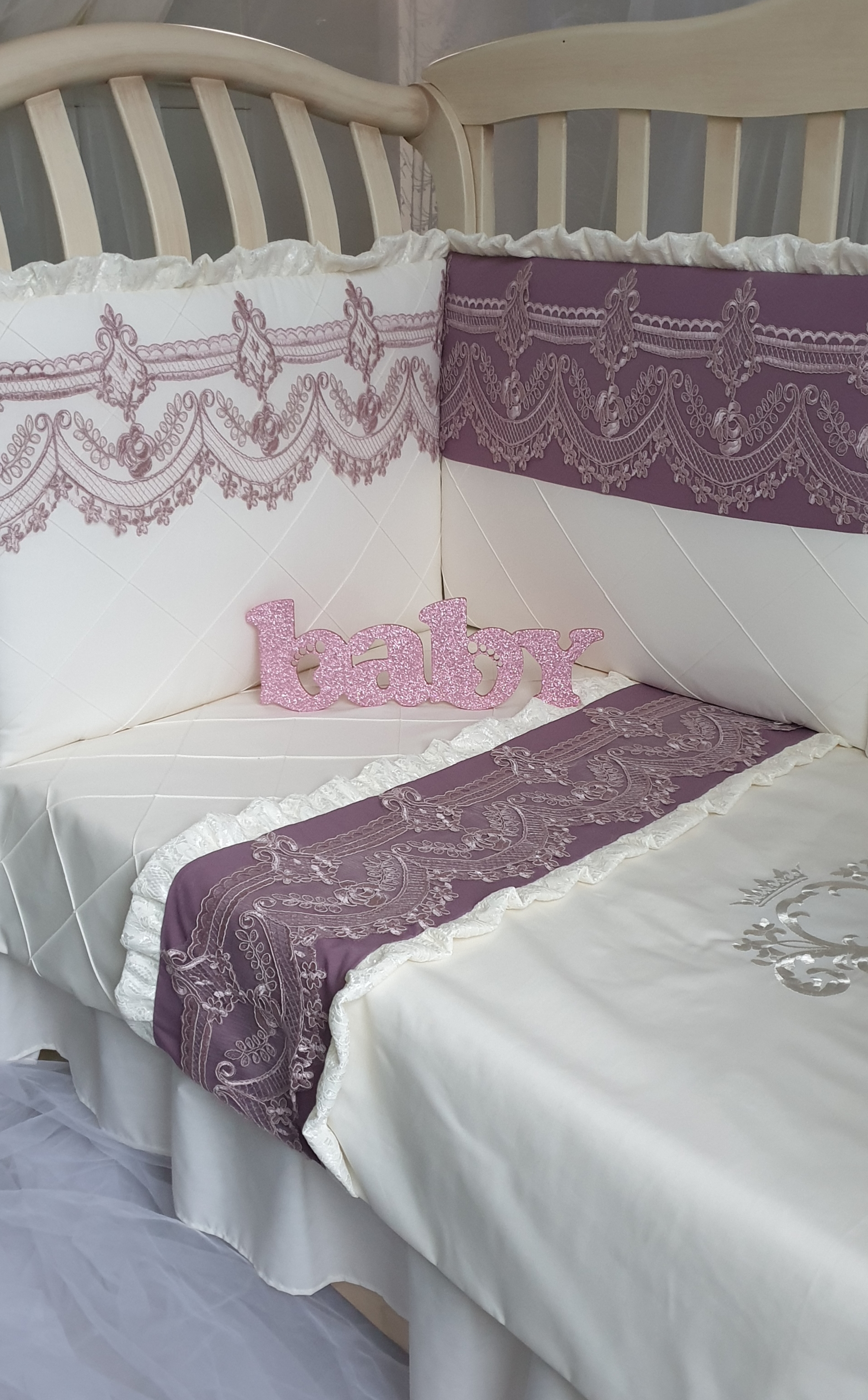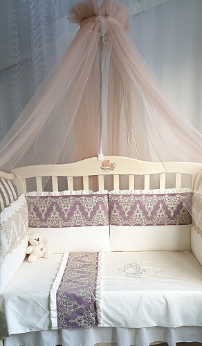Набор в кроватку Ecoline Victoria (эколайн виктория) - очень изысканный комплект с бортиками и постельным бельем для кроватки любого размера (просто при заказе укажите нужные размеры). 6 бортиков надежно крепятся с помощью липучек на вашу кроватку. Бортики и постельное белье выполнены из гипоаллергенного сатина и украшены рисунками и вышитыми узорами. Все бортики со съемными чехлами, что позволяет легко содержать бортики в чистоте. Эксплуатация набора будет простой , так как он не боится частых стирок, не меняет цвет и форму. Это идеальное решение для ложа новорожденного, ведь комплект включает в себя 11 предметов, составляющих единый ансамбль.