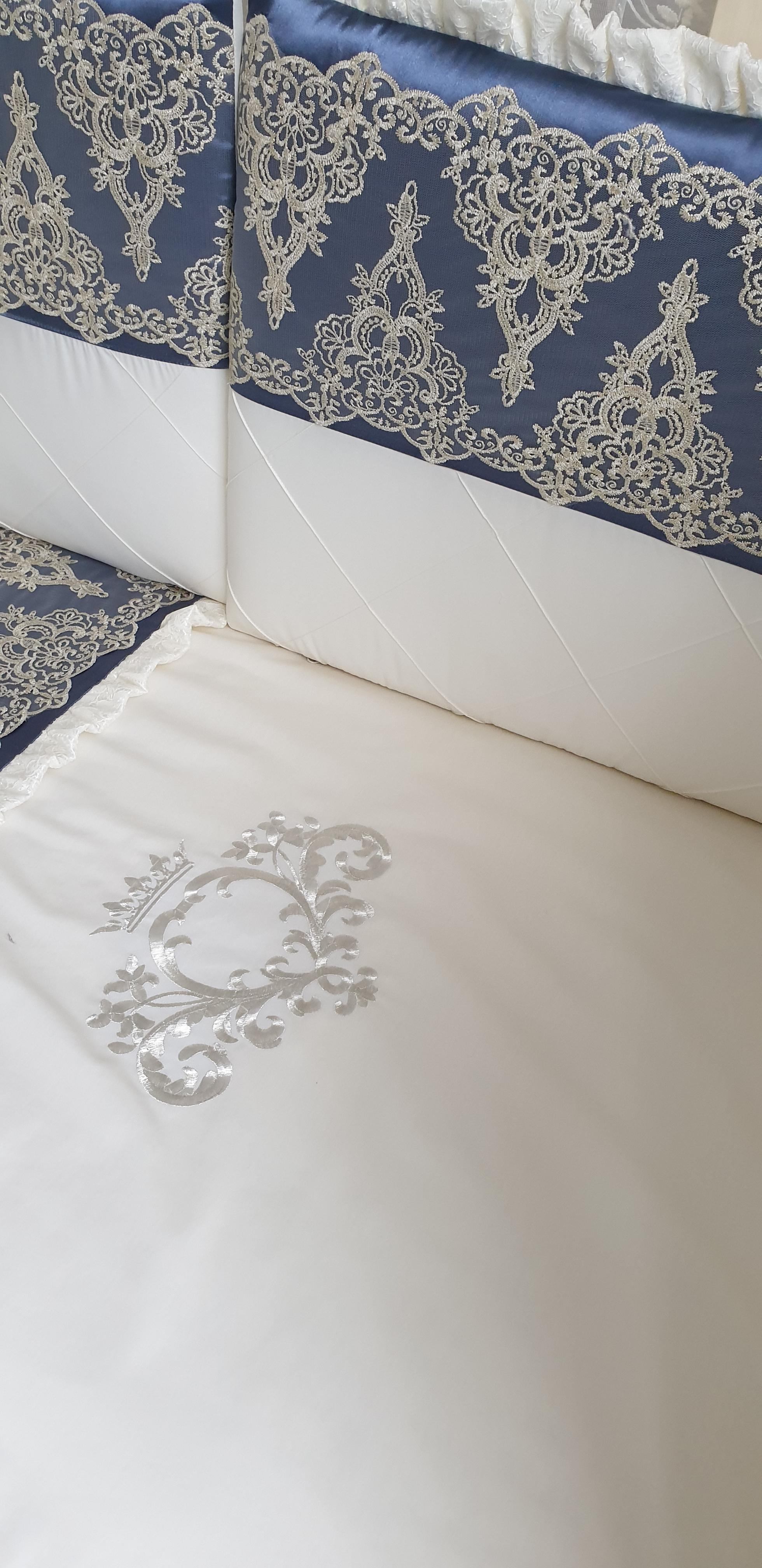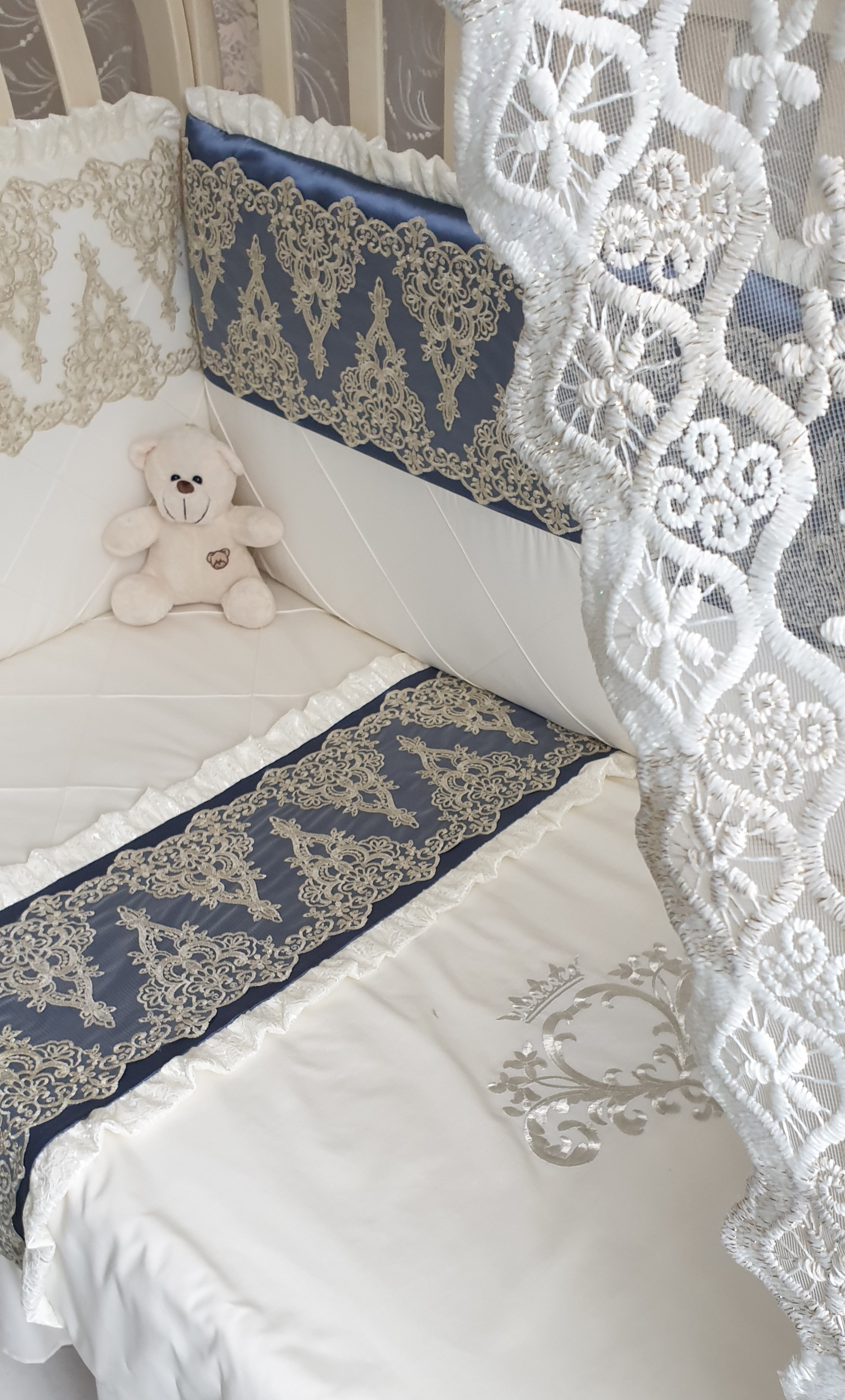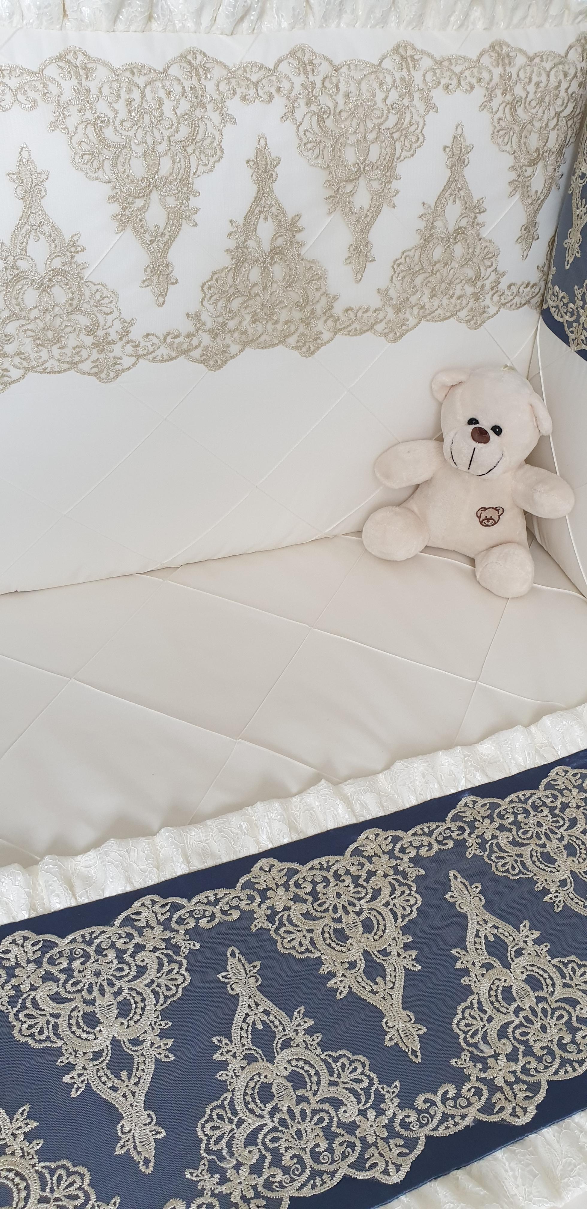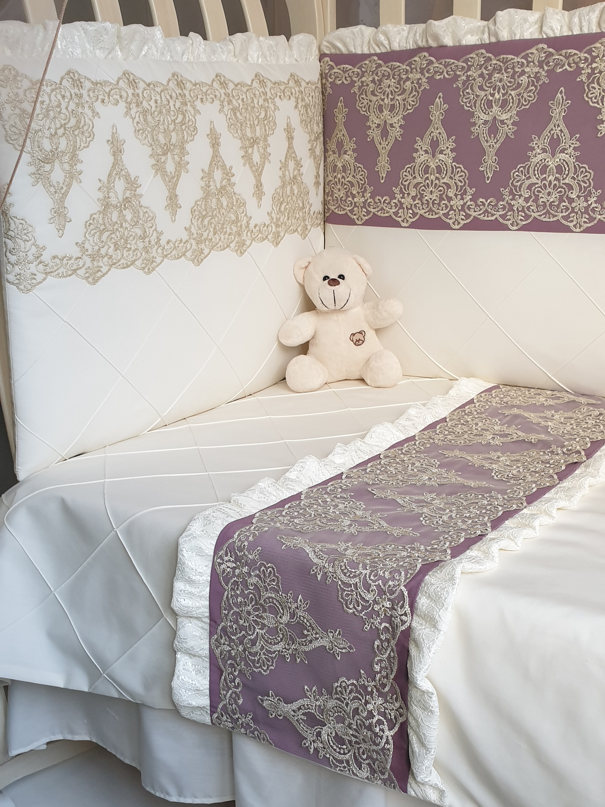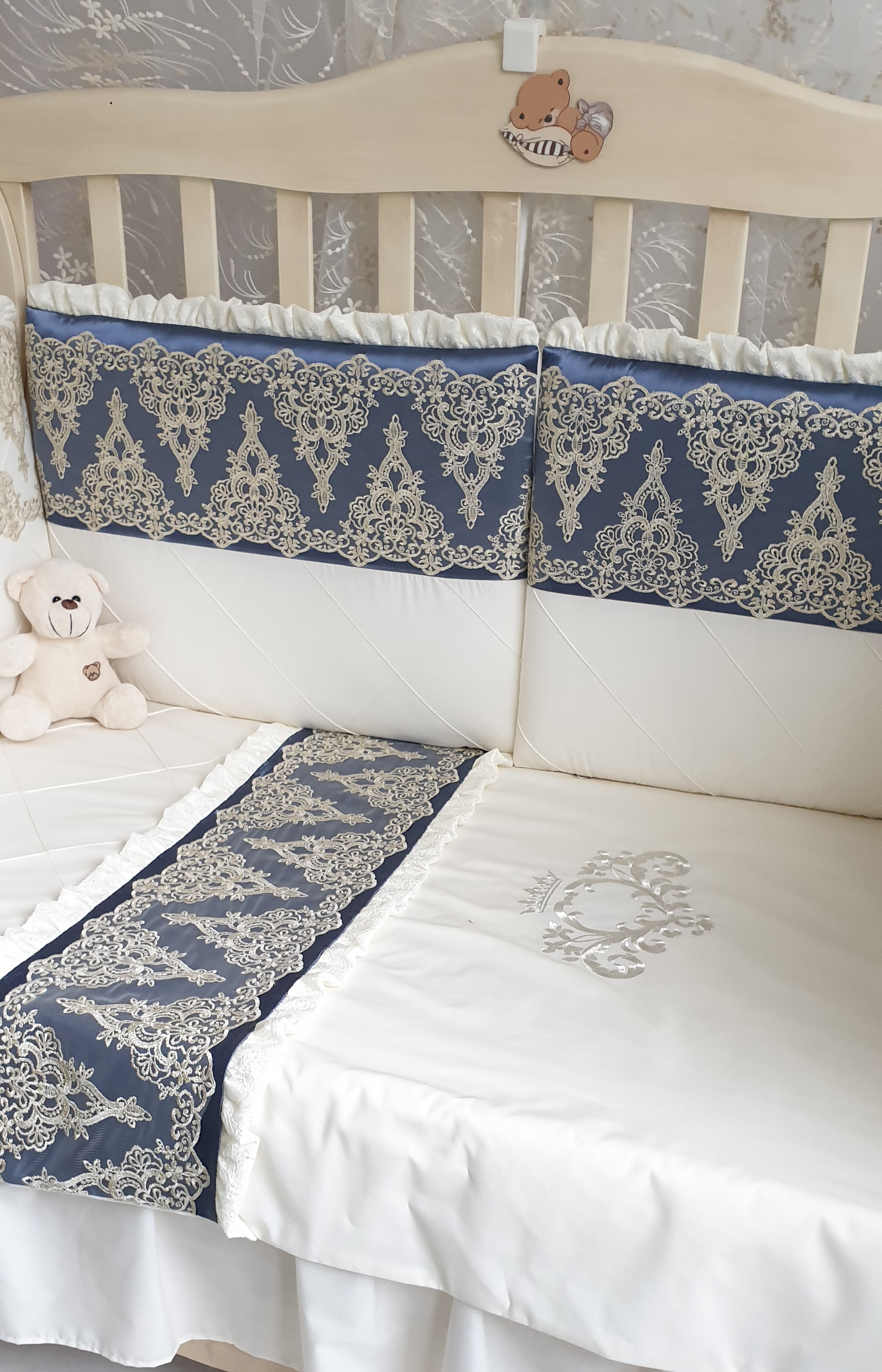 Набор в кроватку Ecoline Victoria (эколайн виктория) - очень изысканный комплект с бортиками и постельным бельем для кроватки любого размера (просто при заказе укажите нужные размеры). 6 бортиков надежно крепятся с помощью липучек на вашу кроватку. Бортики и постельное белье выполнены из гипоаллергенного сатина и украшены рисунками и вышитыми узорами. Все бортики со съемными чехлами, что позволяет легко содержать бортики в чистоте. Эксплуатация набора будет простой , так как он не боится частых стирок, не меняет цвет и форму. Это идеальное решение для ложа новорожденного, ведь комплект включает в себя 11 предметов, составляющих единый ансамбль.