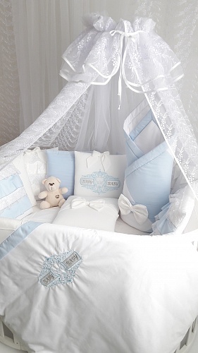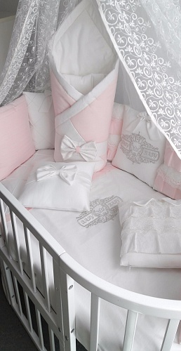 Набор в кроватку Ecoline ЖЕМЧУЖИНА (20 предметов) (Эколайн) - комплект представлен в разных расцветках – розово-белой и серо-белой и т.д., потому идеально подходит и для мальчиков, и для девочек. Набор в круглую кроватку украшен вышивкой, рюшами, тиснением и бантом, он будет прекрасно гармонировать с детской мебелью и вносить нотку роскоши в ежедневную жизнь крохи и его родителей. Благодаря сатину, из которого сшиты изделия, входящие в набор, комплект полностью безопасен, он не содержит вредных веществ. Наполнителем для бортика, подушечки и одеяльца выступает опенформ, являющийся мягким, но в то же время отлично держащим свою форму материалом, пропускающим воздух и впитывающим влагу.