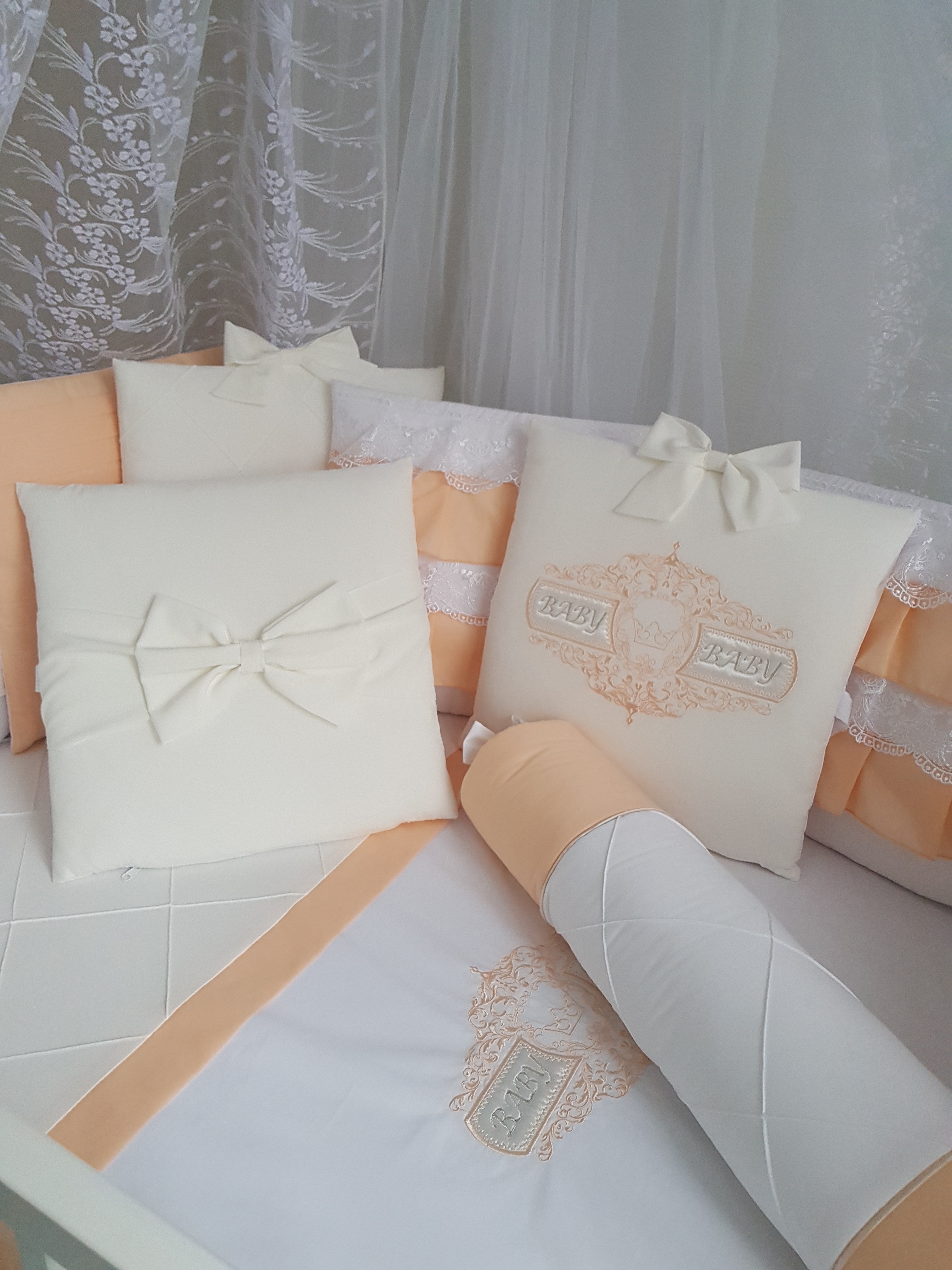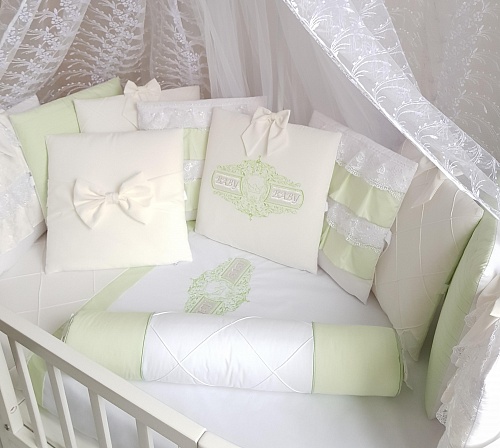 Бортики в кроватку Ecoline ЖЕМЧУЖИНА (Эколайн) - набор бортиков в круглую, овальную или классическую кровать. Бортики выполнена из сатина, шелка и кружева.
