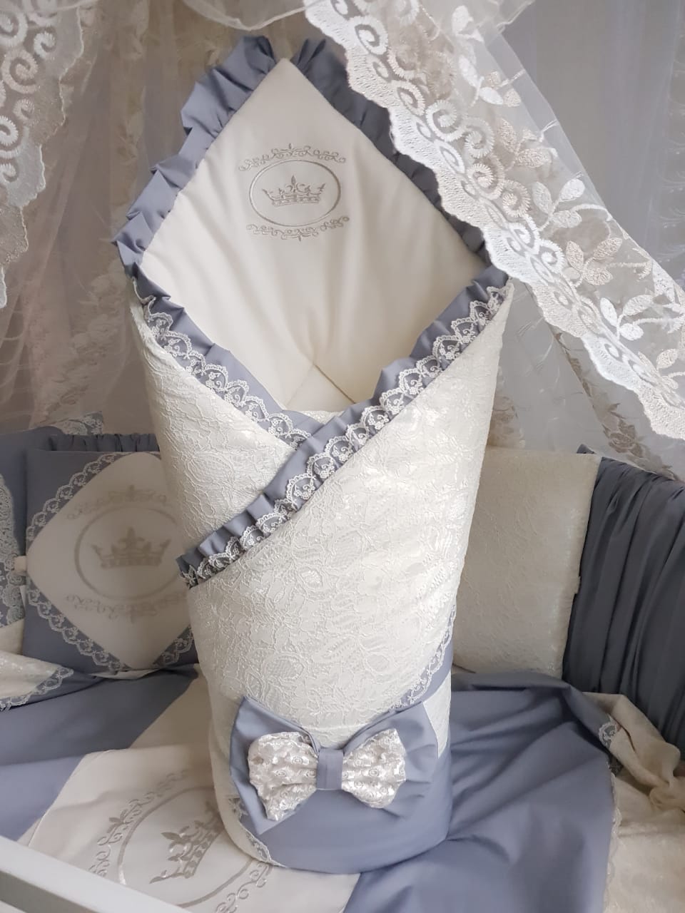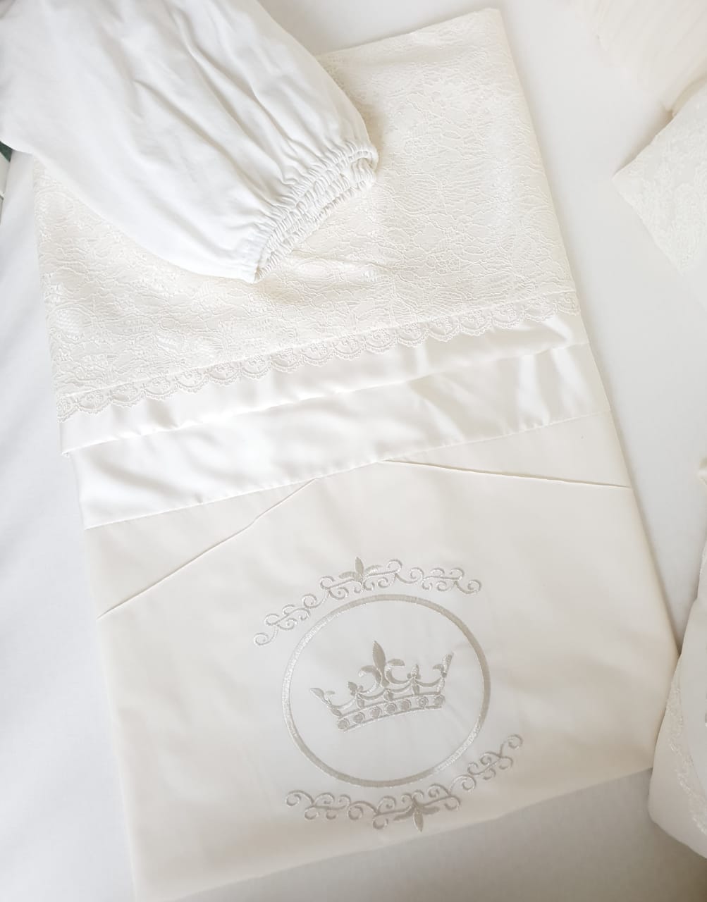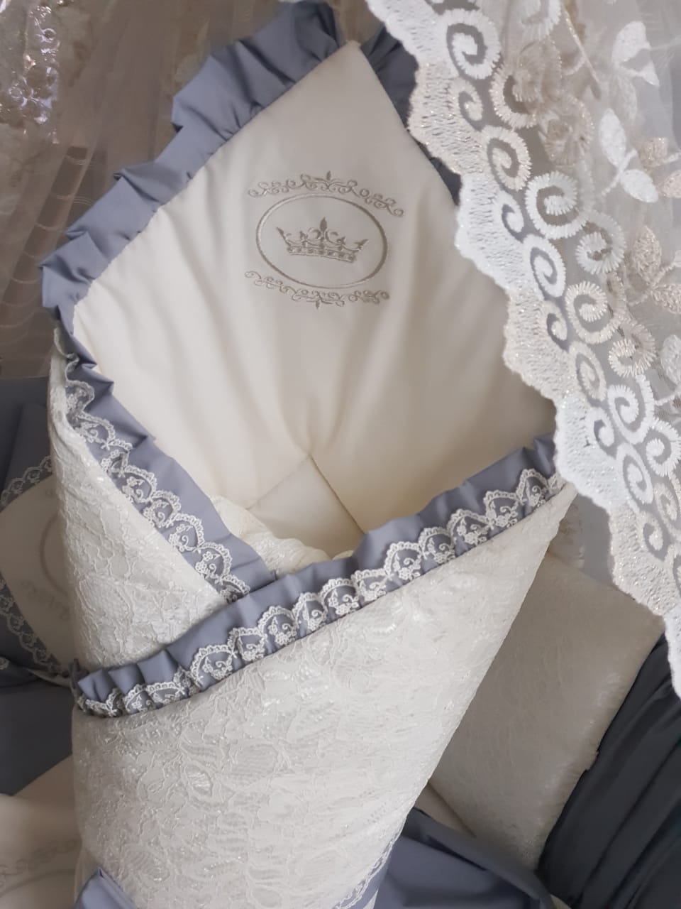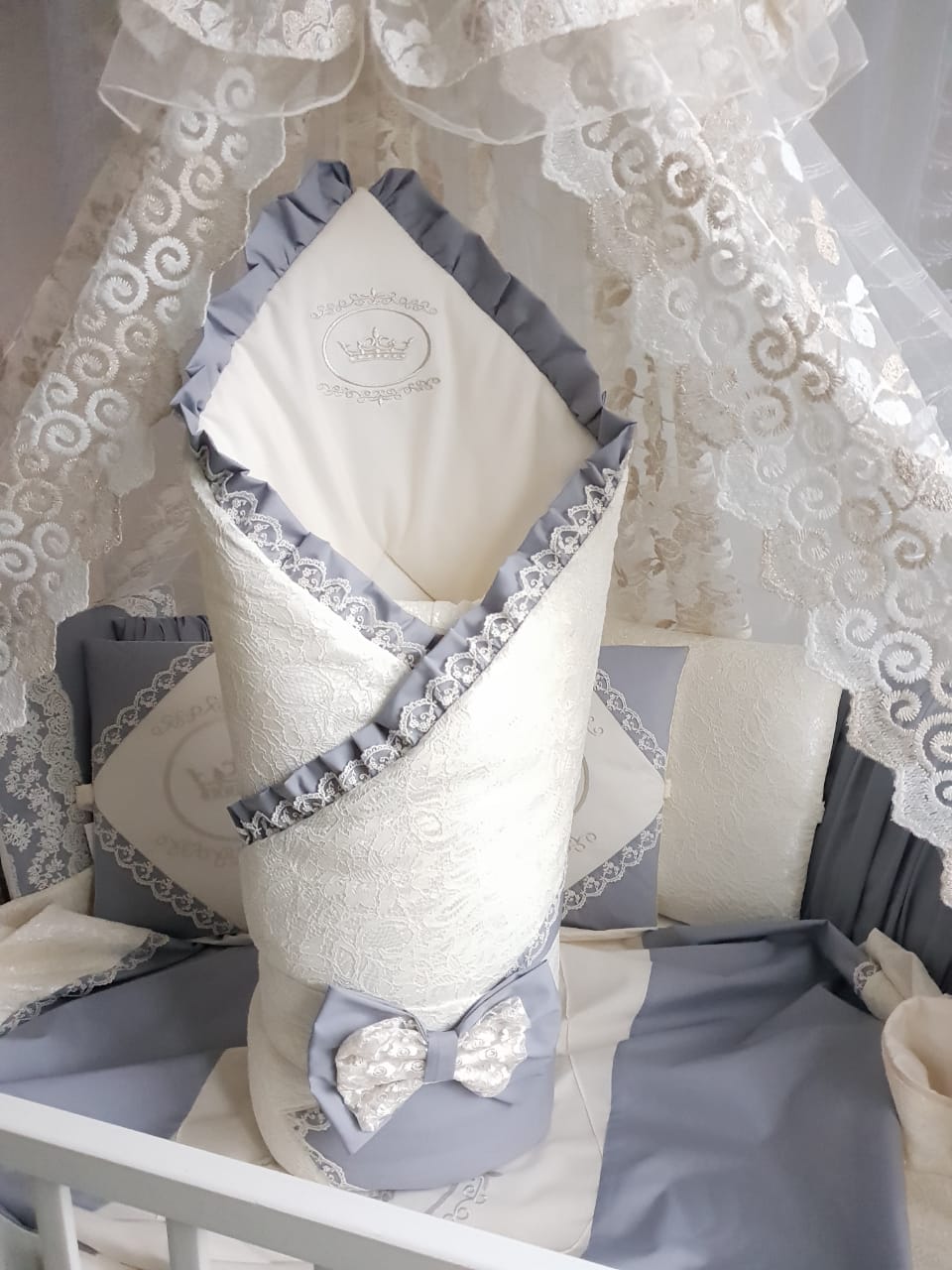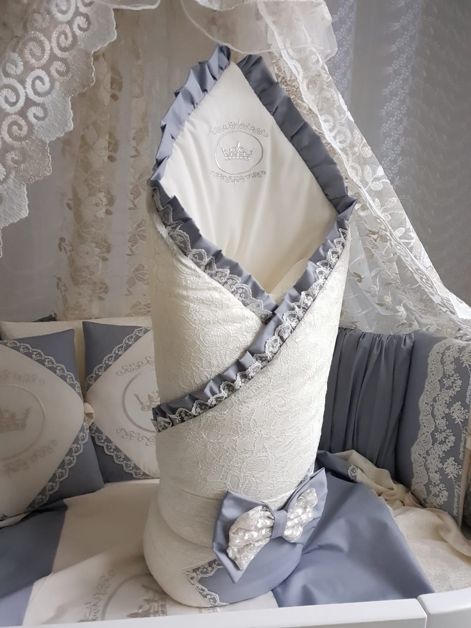 Набор в круглую кроватку Ecoline BENITA light (эколайн бенита лайт) - очень красивый комплект, украшенный нежным кружевом, фактурной тканью и вышивкой. В комплект входит все самое необходимое для ребенка с рождения до 3-4 лет. Бортики (мягкие подушечки с завязками), одеялко со съемным пододеяльником, подушка с наволочкой и универсальная простынь на резинке. За комплектом очень легко ухаживать , а за счет высокого качества материалов он прослужит вам долго, не потеряв свой первоначальный вид.
