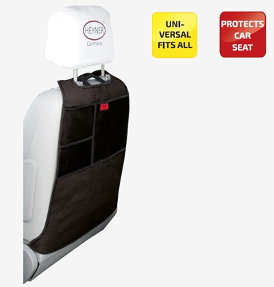 Органайзер на спинку сиденья Heyner KickMatOrganizer - это удобная вещь на спинку вашего сидения. Органайзер прекрасно защитит ваш салон от грязных ног ребенка, а так же послужит удобным местом для хранения вещей. В отличии от многих других накидок здесь кармашки расположены в верхней части спинки и ребенок не испачкает вещи своими ногами. Он легко устанавливается и легко чиститься.