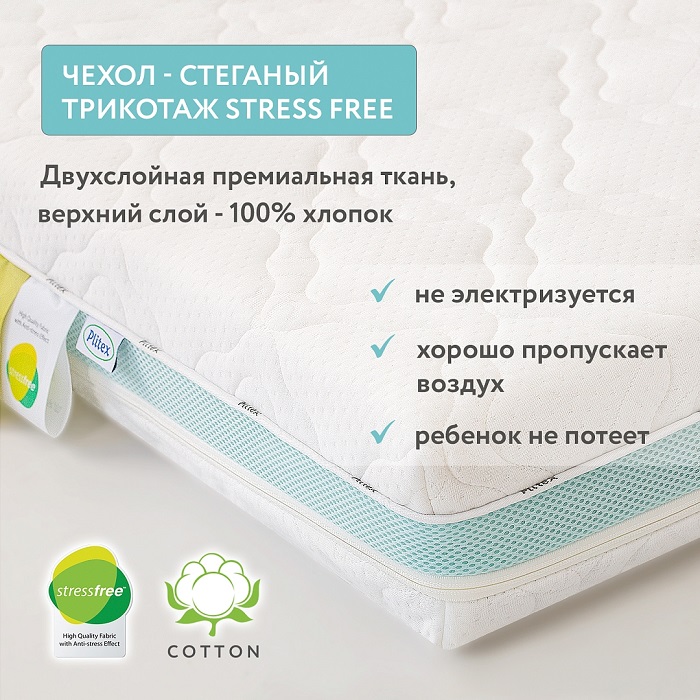 1) Чехол «StressFree» — инновационный чехол, двухслойная трикотажная ткань, верхний слой из 100% хлопка. Устраняет проблему статического электричества.