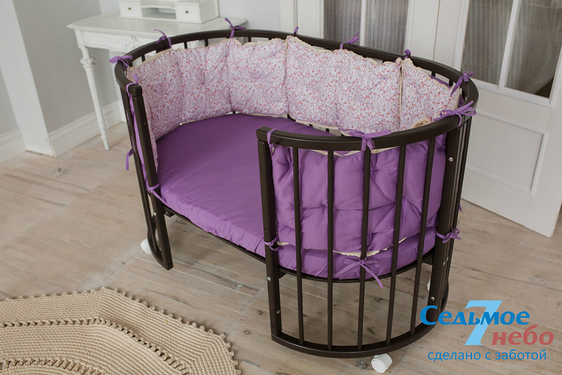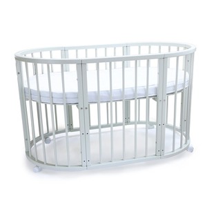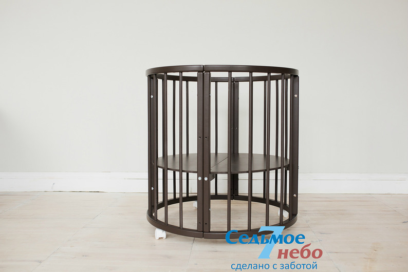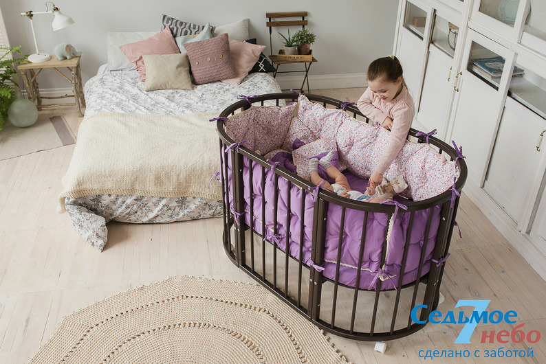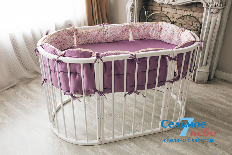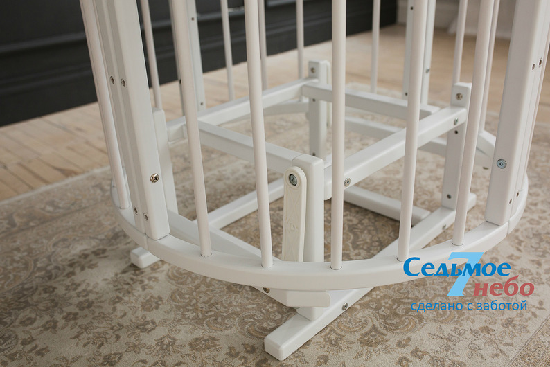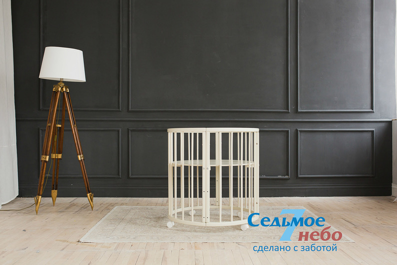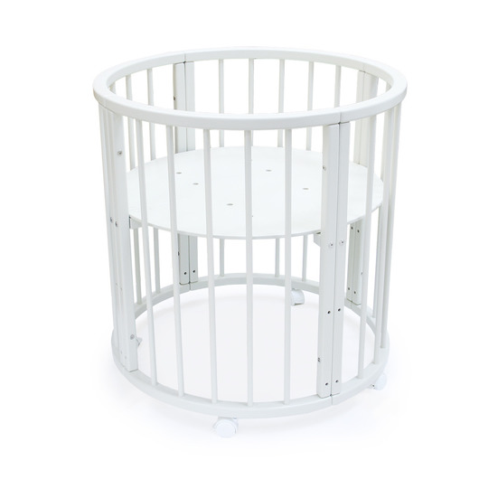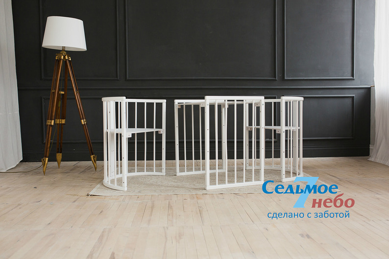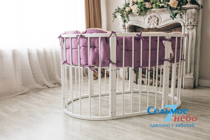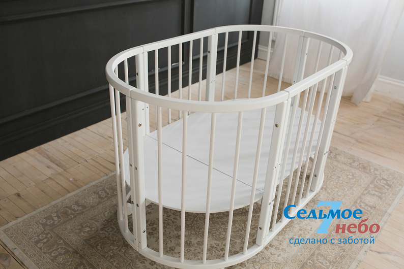 Кровать трансформер Седьмое небо Merry Happy Classic (мери хеппи классик) – это невероятно функциональная кроватка 6 в 1: круглая кроватка с пеленальным столиком с рождения до 6 месяцев, овальная кровать до 4 лет, манеж, столик, кресло, диван. В такой кроватке малышу первых месяцев жизни комфортно и уютно, и нет лишнего пространства как в прямоугольной кровати, которого очень часто боятся малыши. Такая кроватка не занимает много места и смотрится очень современно и стильно. Теперь не придется выбирать, что купить колыбельку или полноценную кровать, нужно ли покупать пеленальный столик или нет. Вы сами сможете менять конфигурацию вашей детской кроватки и подстраиваться под вашего ребенка. Меняйте, решайте и фантазируйте, с кроваткой Merry Happy вам будет весело и интересно. Кроватка сделана из качественных и безопасных материалов. Удобна и проста в использовании.