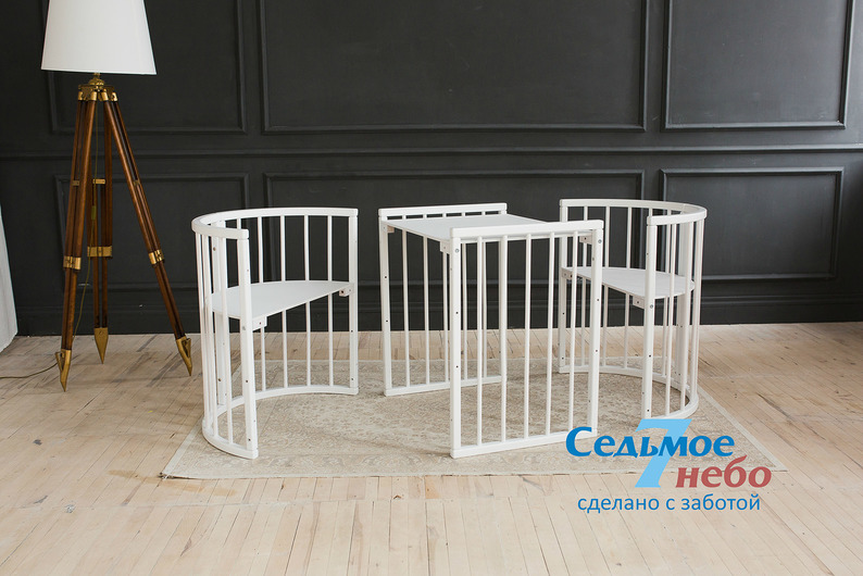 А когда к ребенку придут гости или кроватка будет уже не актульна, всегда можно сделать столик и удобные кресла. Идеальное место для игр, занятий и отдыха.