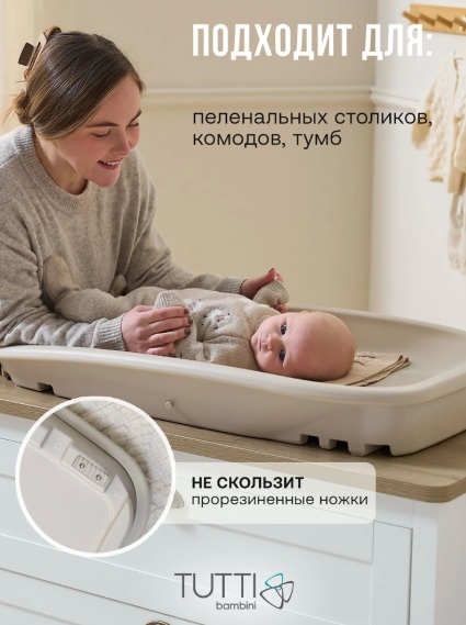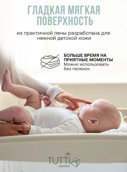 Пеленальная поверхность Tutti Bambini Cushi имеет закругленную форму с удобными бортиками, которые обезопасят ребенка.
