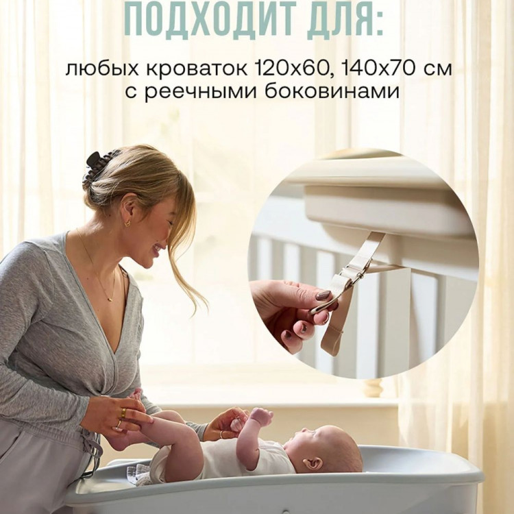 - Устанавливается на кровати с рейками 120х60 см, 140х70 см, а так же на бельевые комоды, тумбы, пеленальные комоды и тд.