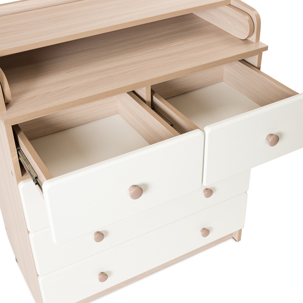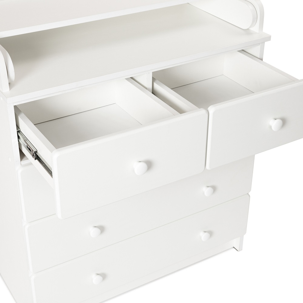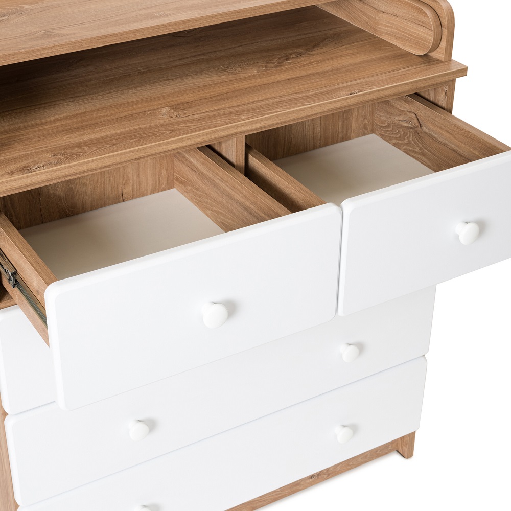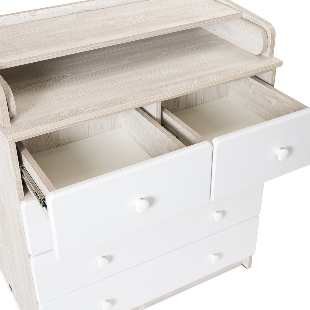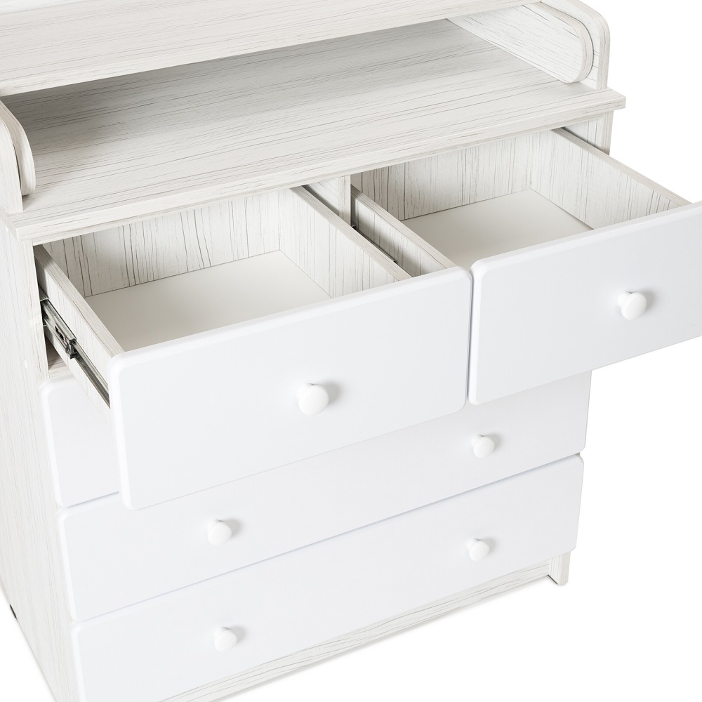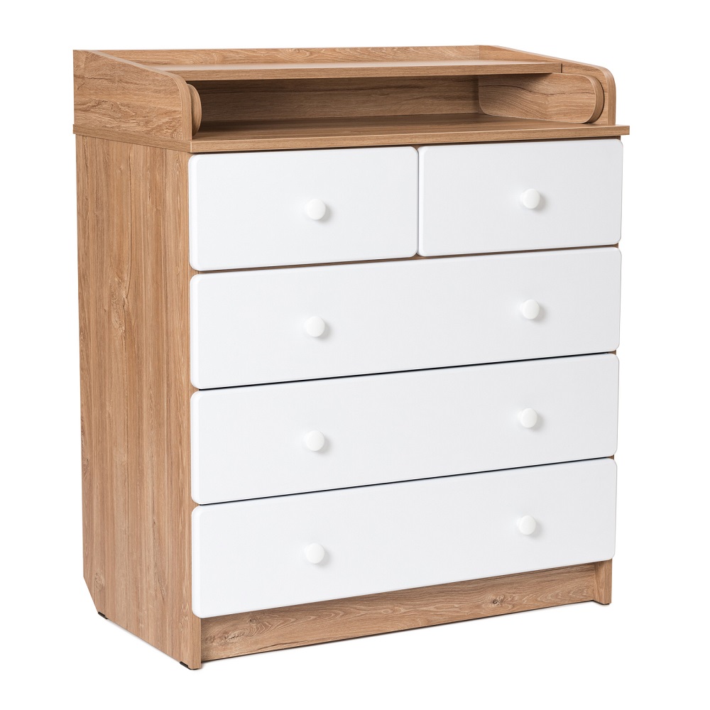 Пеленальный комод BEBIZARO WAXED FIVE (Бебизаро ) - функциональное место для хранения детских вещей и ухода за ребенком. Удобная складная пеленальная поверхность с бортиками безопасности отлично подойдет для пеленания, массажа и переодевания ребенка. Без острых углов. Ящики выдвигаются плавно и бесшумно.