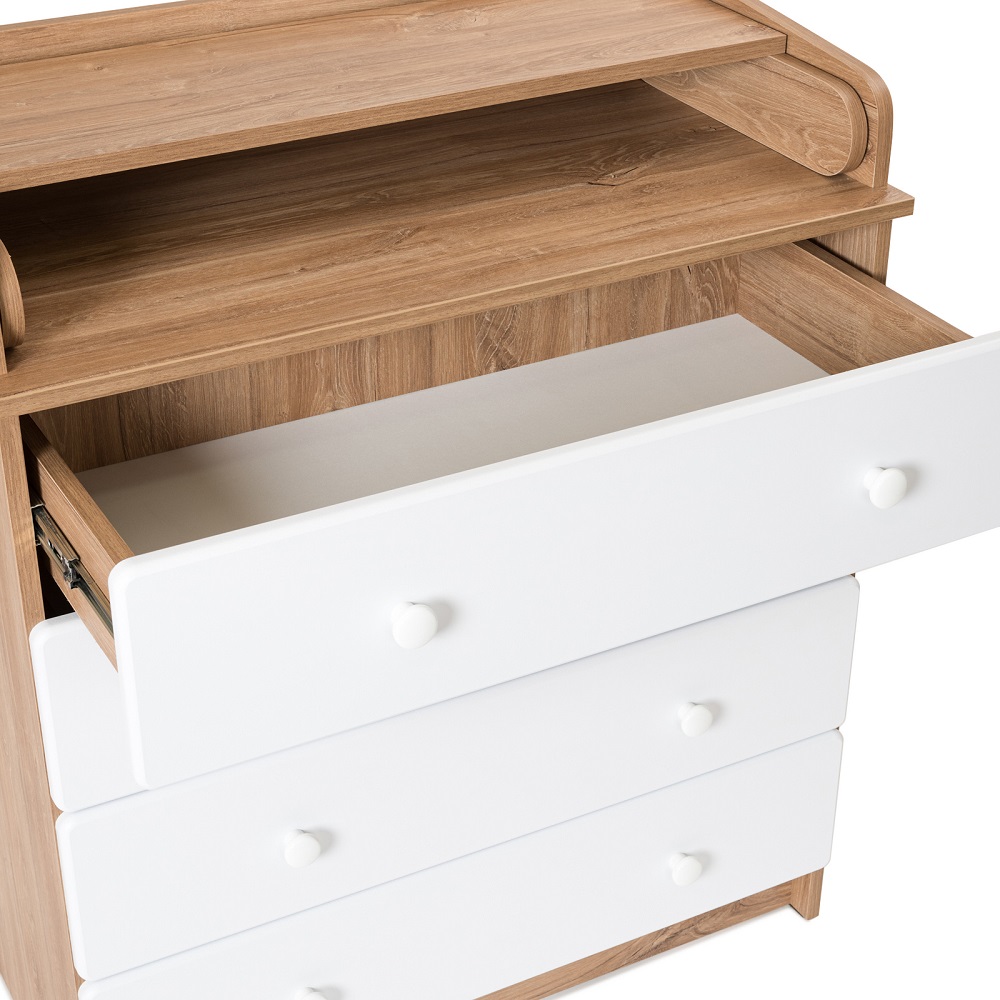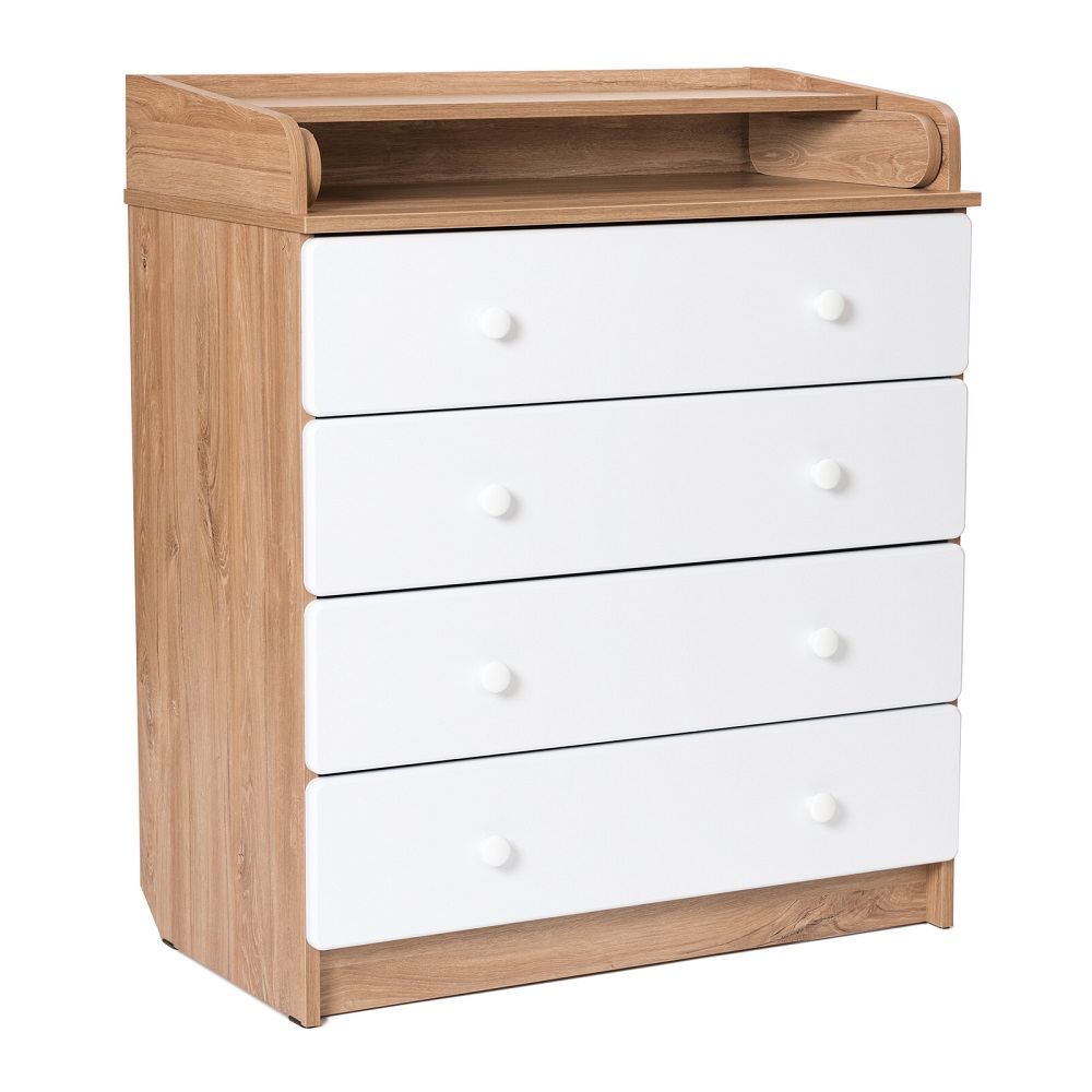 Пеленальный комод BEBIZARO WAXED FOUR (Бебизаро ) - функциональное место для хранения детских вещей и ухода за ребенком. Удобная складная пеленальная поверхность с бортиками безопасности отлично подойдет для пеленания, массажа и переодевания ребенка. Без острых углов. Ящики выдвигаются плавно и бесшумно.