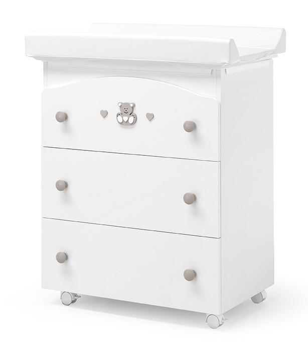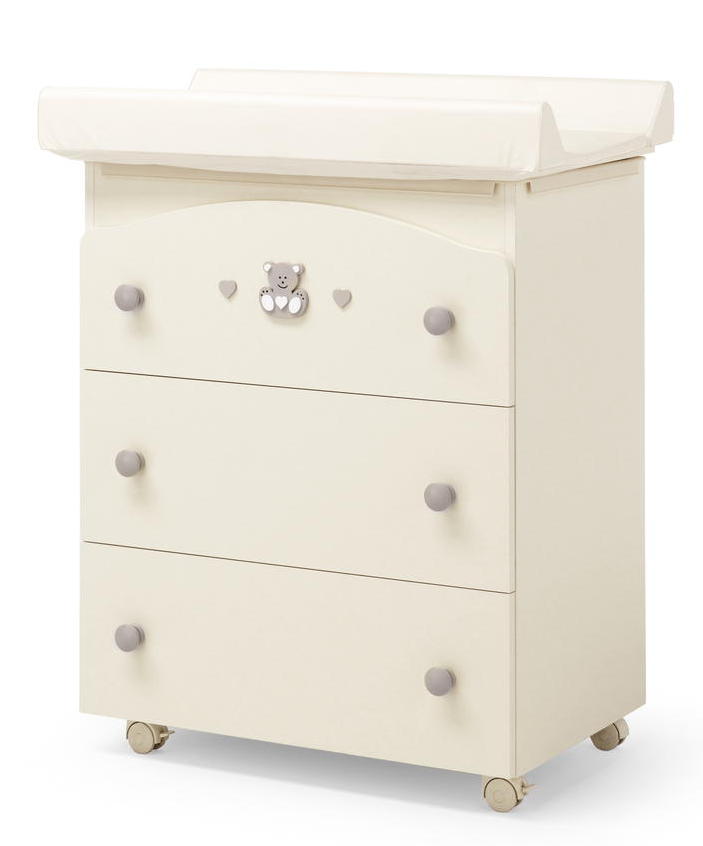 Пеленальный комод Erbesi Charly (Ербеси чарли) - функциональный комод с 3 вместительными ящиками, пеленальным матрасиком и ванночкой.