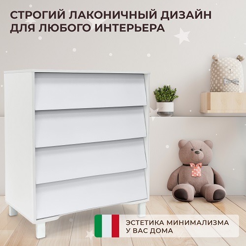 Пеленальный комод Sweet Baby Dante (свит беби данте) - стильный детский комод с оригинальным дизайном и 4 вместительными ящиками. Пеленальный столик легко устанавливается на комод, и легко снимается, не оставляя следов. Все ящики плавно и тихо открываются/закрываются благодаря шариковым направляющим. Оригинальные наклонные фасады полностью заменяют необходимость в ручках, абсолютно безопасны для малыша и удобны в эксплуатации.