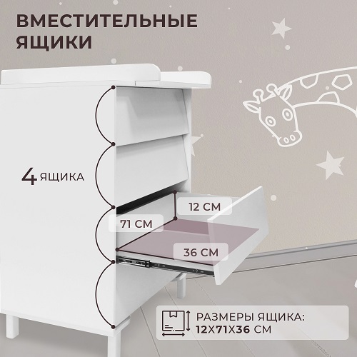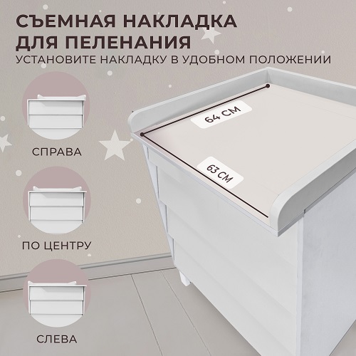 - бортик для пеленания – съемный, благодаря чему вы сможете использовать комод, как классический, когда ваш ребенок подрастет