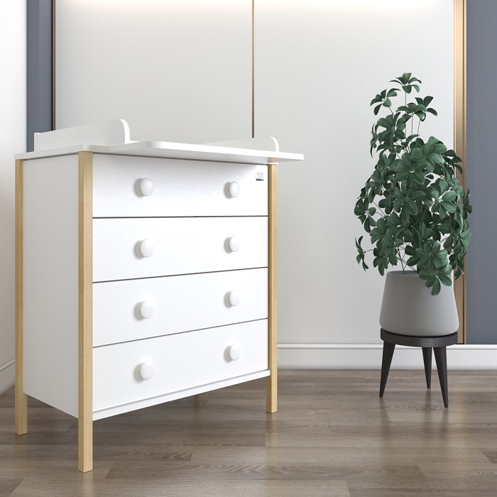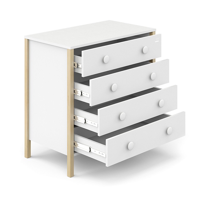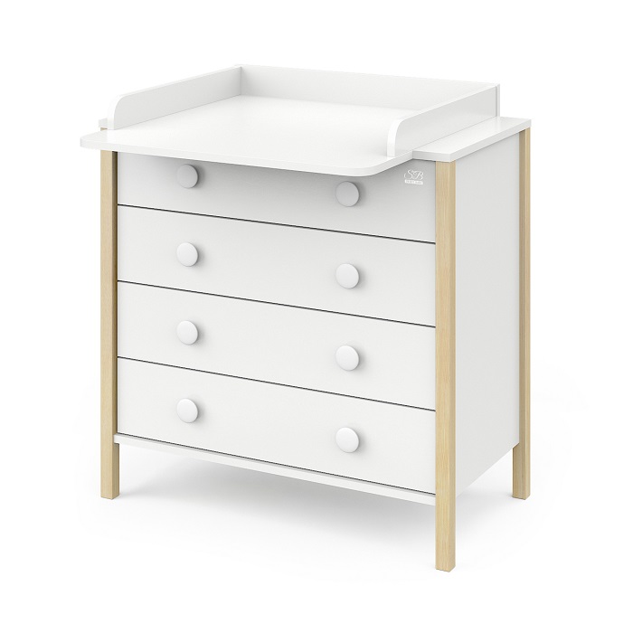 Комод Sweet Baby Giovanni (Свит беби Джиованни) - стильный комод в скандинавском стиле со съемным пеленальным столиком. Комод смотрится оригинально и отлично впишется в любой интерьер. Пеленальный столик легко снимается с комода, не оставляя следов, что позволит превратить пеленальный комод в бельевой. Комод очень вместительный и состоит из 4 больших ящиков. Круглые ручки придают комоду особое очарование. Модель очень устойчивая, без острых углов. Все лакокрасочные материалы нетоксичны и долговечны.