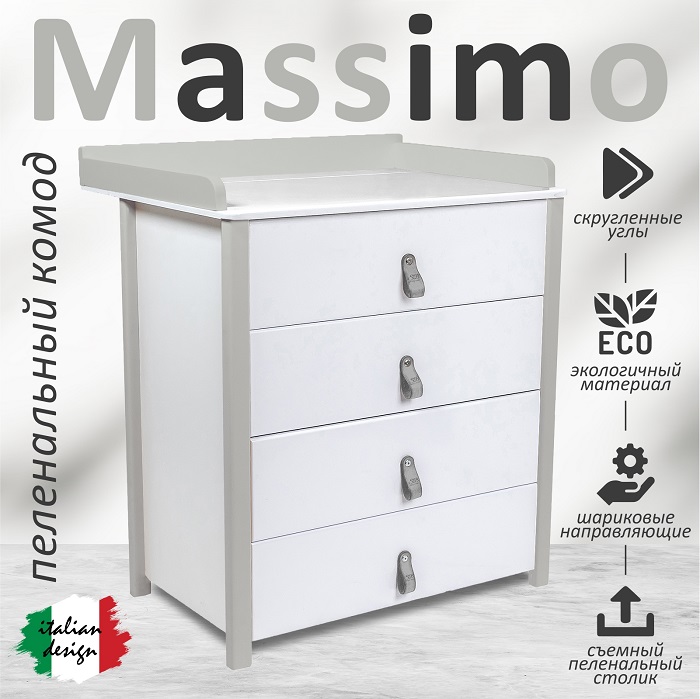 Пеленальный комод Sweet Baby Massimo (Свитбеби Массимо) - оригинальный и невероятно функциональный комод с кожаными ручками. Кожаные ручки для выдвижных ящиков дополняют естественный дизайн комода и придают ему еще больше функциональности.