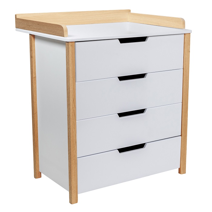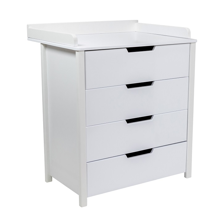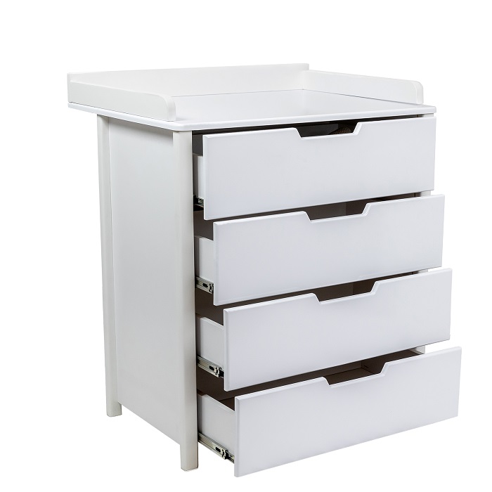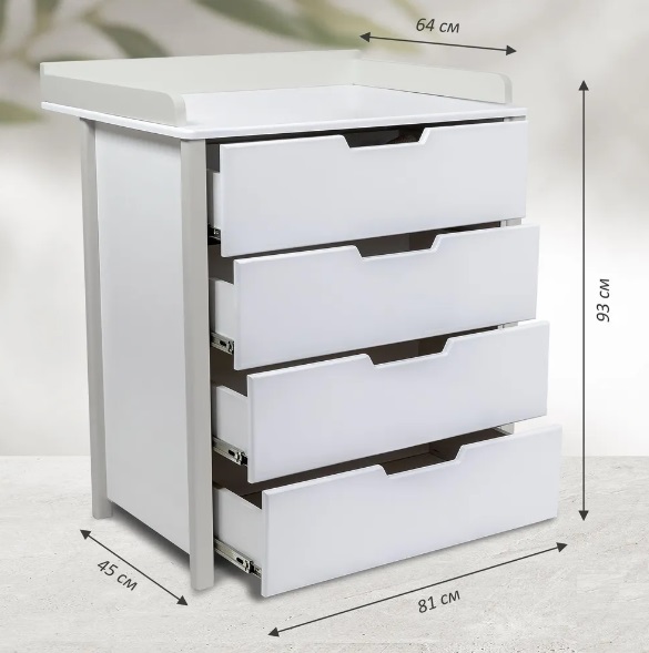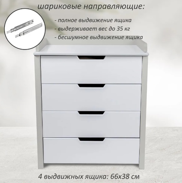 Четыре вместительных ящика комода позволят удобно разместить все вещи ребенка. Интегрированные фрезеровочные ручки на мебельном фасаде делают пользование комода очень удобным, а внешний вид комода стильным и оригинальным. Шариковые направляющие позволяют ящиками выдерживать большую нагрузку. Сочетание массива березы и МДФ придаст вашему комоду долговечность, прочность и элегантность. Комод изготовлен из высококачественных материалов, которые долго сохранят свое первоначальное состояние. Благодаря отсутствию острых углов и высокому качеству материалов детский комод является безопасным для использования.
