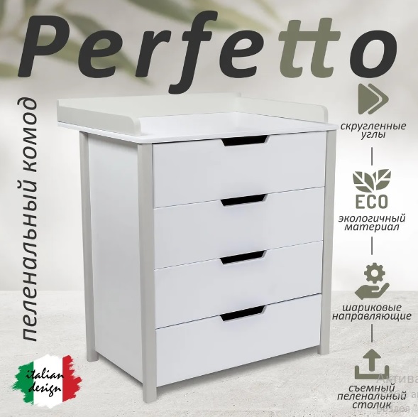Пеленальный комод Sweet Baby Perfetto (Свит беби перфекто) - стильный и универсальный комод со съемным пеленальным столиком. За счет съемной пеленальной поверхности пеленальный комод легко трансформируется в обычный бельевой комод для хранения вещей.