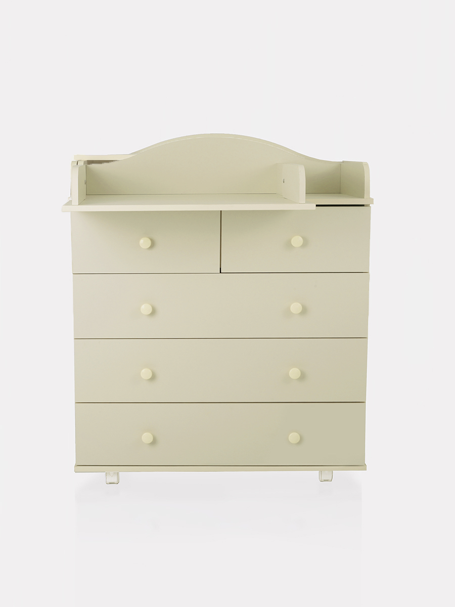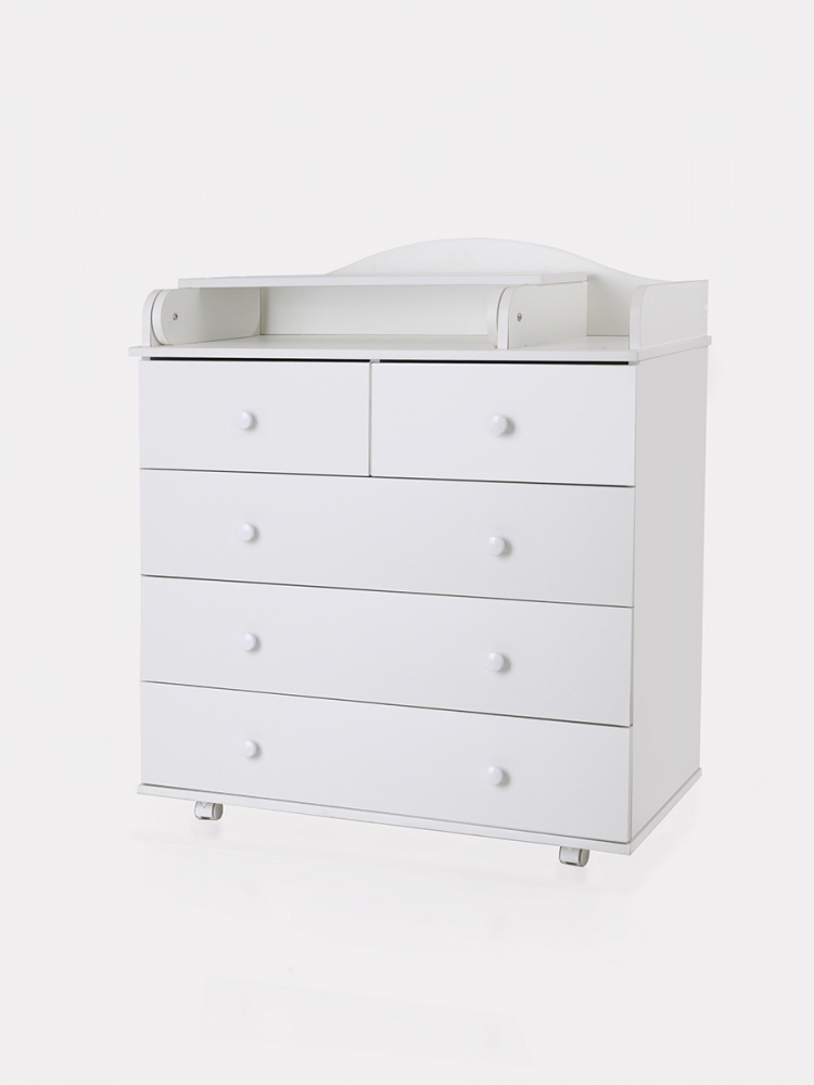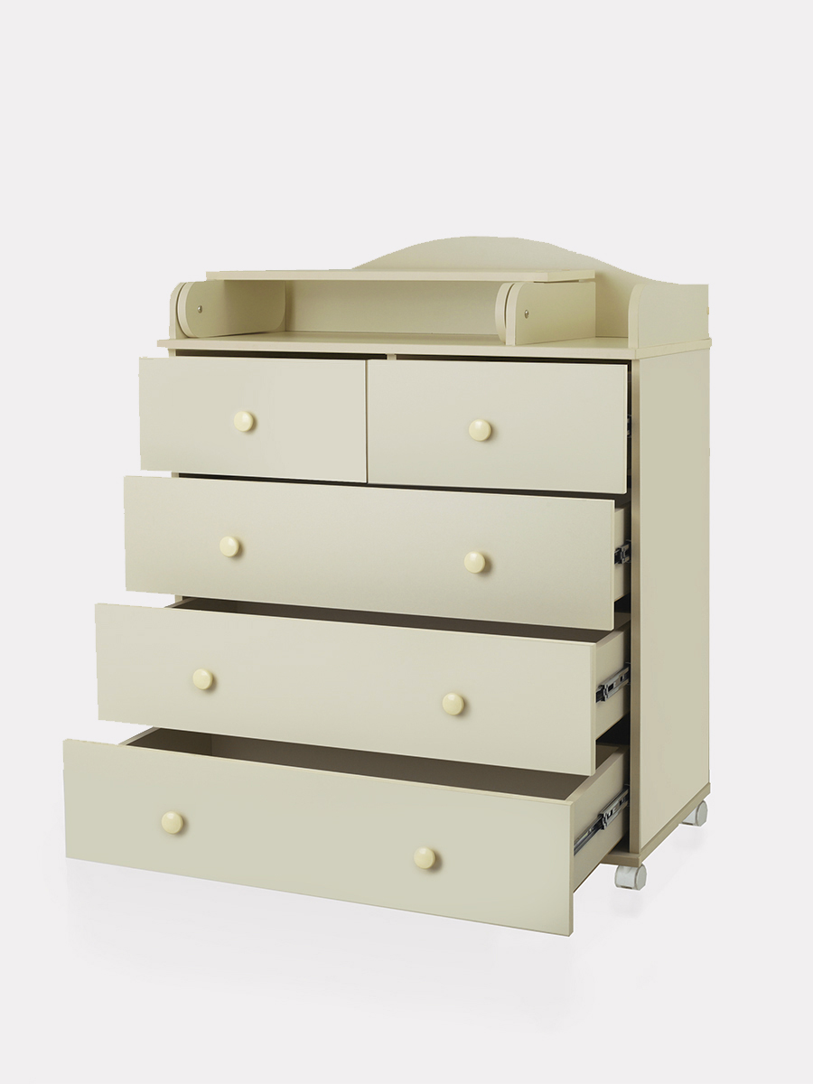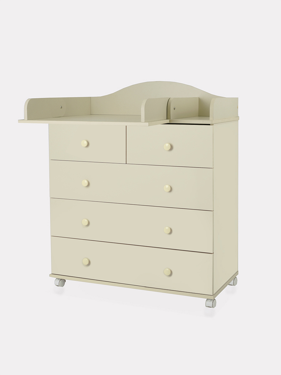 Комод Топотушки Фортуна Плюс 800/5 (арт. 84) - безопасный и качественный комод с пеленальной поверхностью. Комод имеет специальную стропу для жесткого крепления к стене, но при необходимости его легко передвинуть с помощью 4 колес. Комод оснащен 5 вместительными ящиками и удобными ручками. Все ящики бесшумно открываются и закрываются, чтобы не потревожить сон ребенка. Удобный пеленальный столик легко раскладывается для удобства переодевания ребенка.