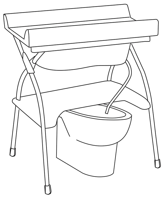 - Широкая анатомическая ванночка с отверстием для подвода воды через трубку