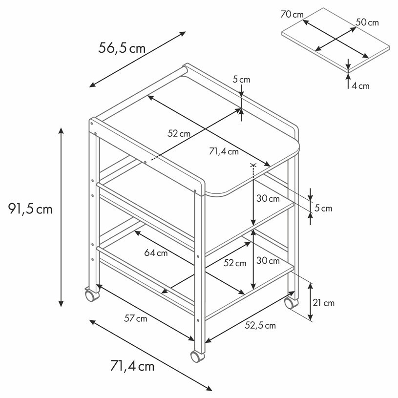- Размер бортиков у пеленальной зоны: 71,4 х 52 см.