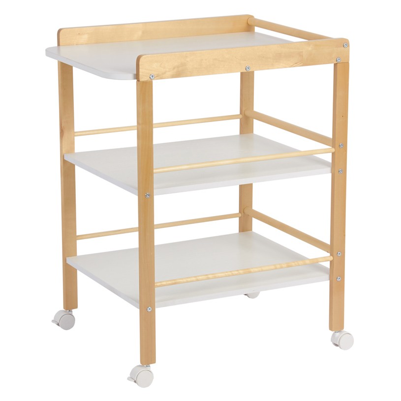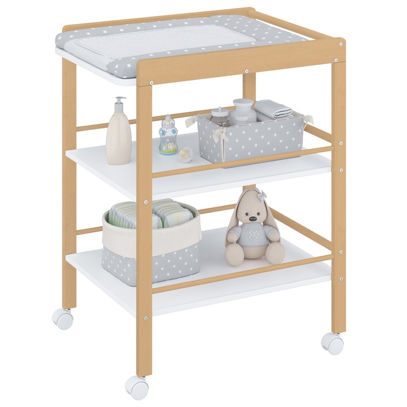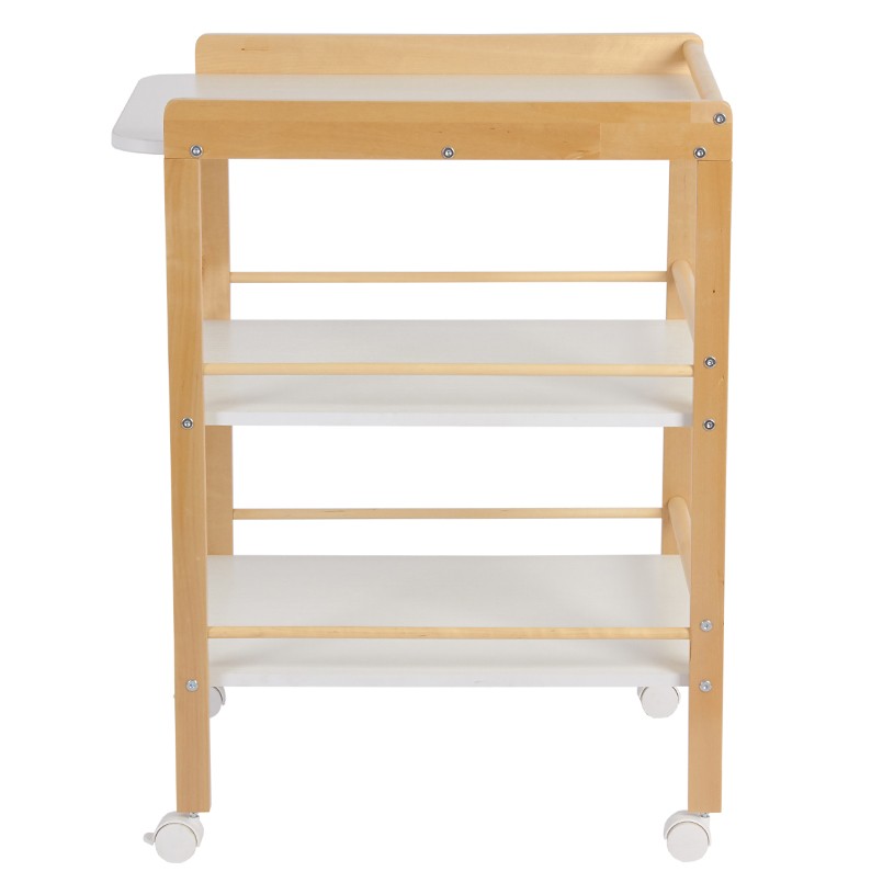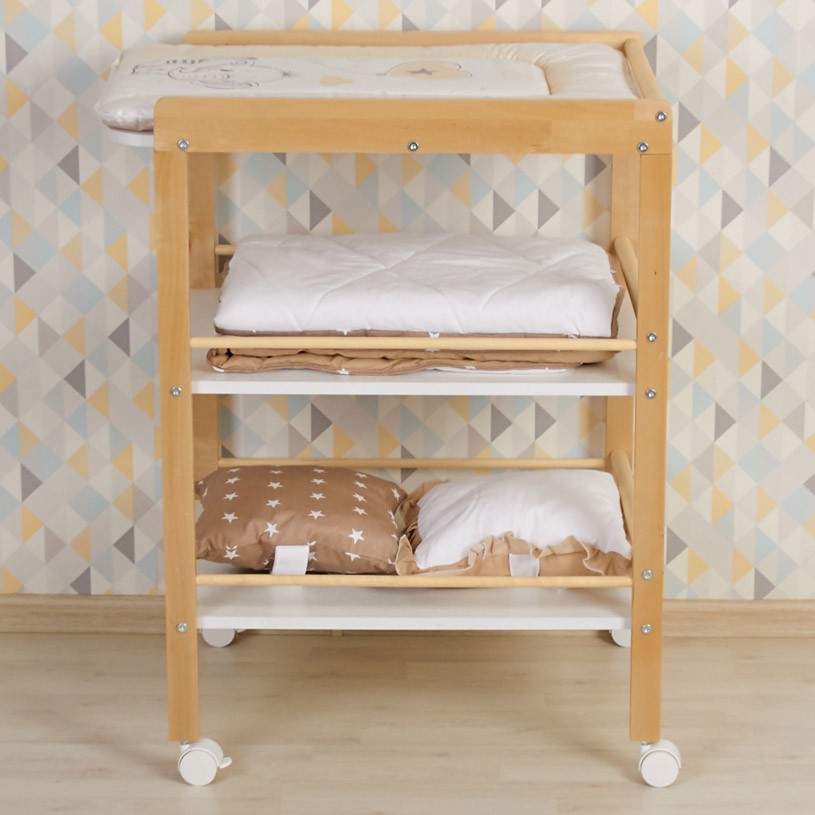 Пеленальный столик Polini kids Simple 1090 (Полини кидс симпл) - малогабаритное и удобное изделие для проведения гигиенических процедур и переодевания малыша. Оснащен 3-мя полками для расположения необходимых предметов под рукой. Имеет бортики с закругленными углами для обеспечения безопасности ребенка во время нахождения на пеленальном столике. Столик изготовлен из качественных и натуральных материалов: массив березы с безопасным лакокрасочным покрытием. На опорах установлены съемные колеса, что делает столик мобильным и еще более комфортным в эксплуатации. Два колеса идут со стопором, два – без.