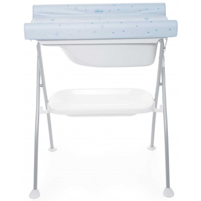 Пеленальный столик с ванночкой Chicco Bubble Land (Чико баббл ленд) - удобный аксессуар который поможет в уходе за ребенком. Надежный и практичный столик поможет удобно переодевать ребенка, делать массаж и необходимые гигиенические процедуры. При необходимости пеленальный столик с подставкой очень быстро и компактно складываются, не занимая много места. Под столиком размещена ванночка с противоскользящим покрытием. Такой вариант ванночки в первые месяцы после рождения ребенка поможет маме и папе купать ребенка на удобной высоте, не наклоняясь и не нагружая спину. Под ванночкой расположена удобная полочка для детских вещей.