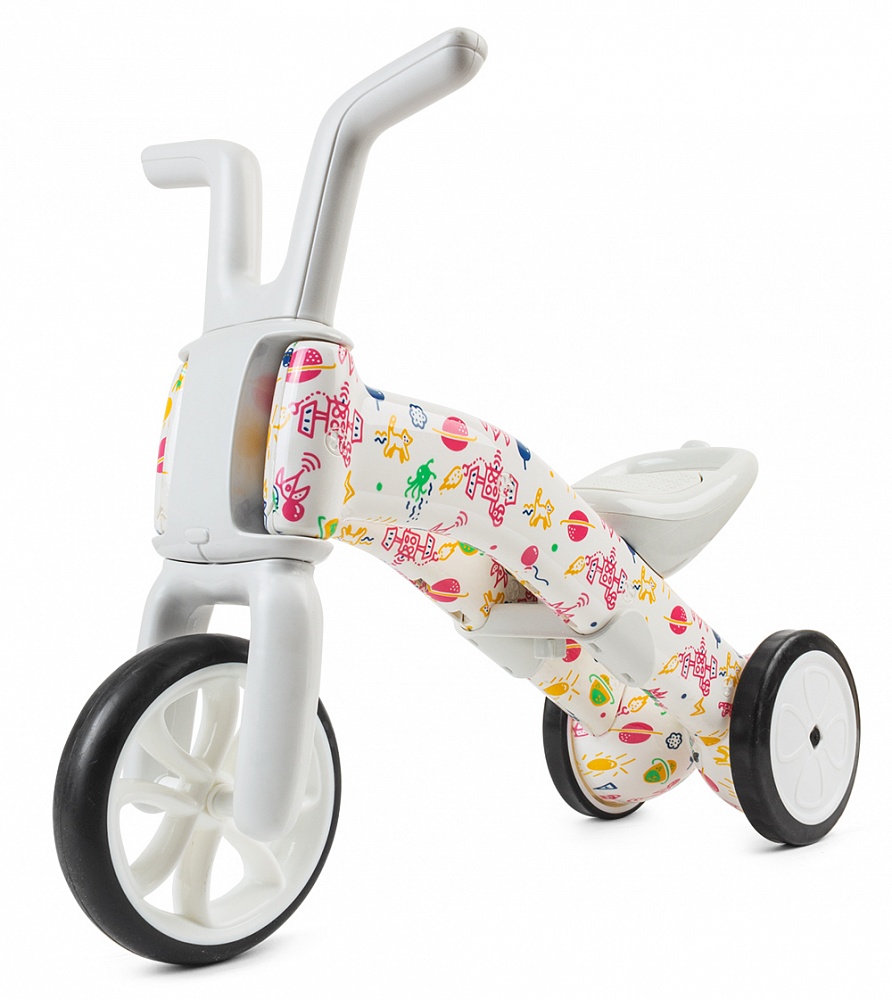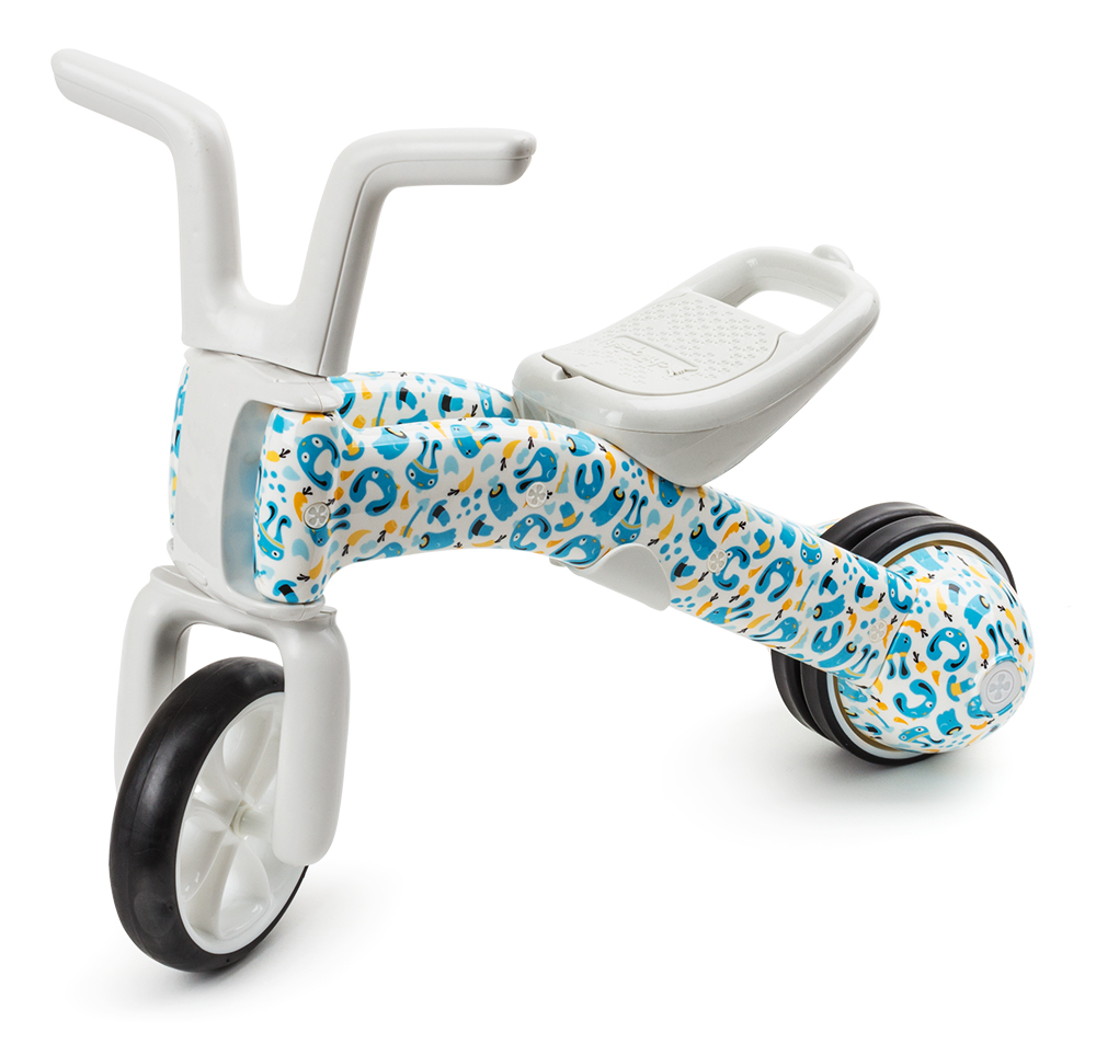 Быть устойчивым, как каталка, легким, плавно катящимся, универсальным, красивым... Уникальная особенность Чилафиш "Банзи" состоит в том, что это трансформер. Сначала ребенок учится отталкиваться ногами, когда два колеса сзади расставлены широко (режим каталки), а потом, после того как кроха освоится, можно быстро перевернуть раму с колесами (переключиться) так, что из задних двух колес получится одно сдвоенное колесо - и балансировать как на беговелике! Чтобы понять как это происходит - посмотрите видео-ролик ниже.