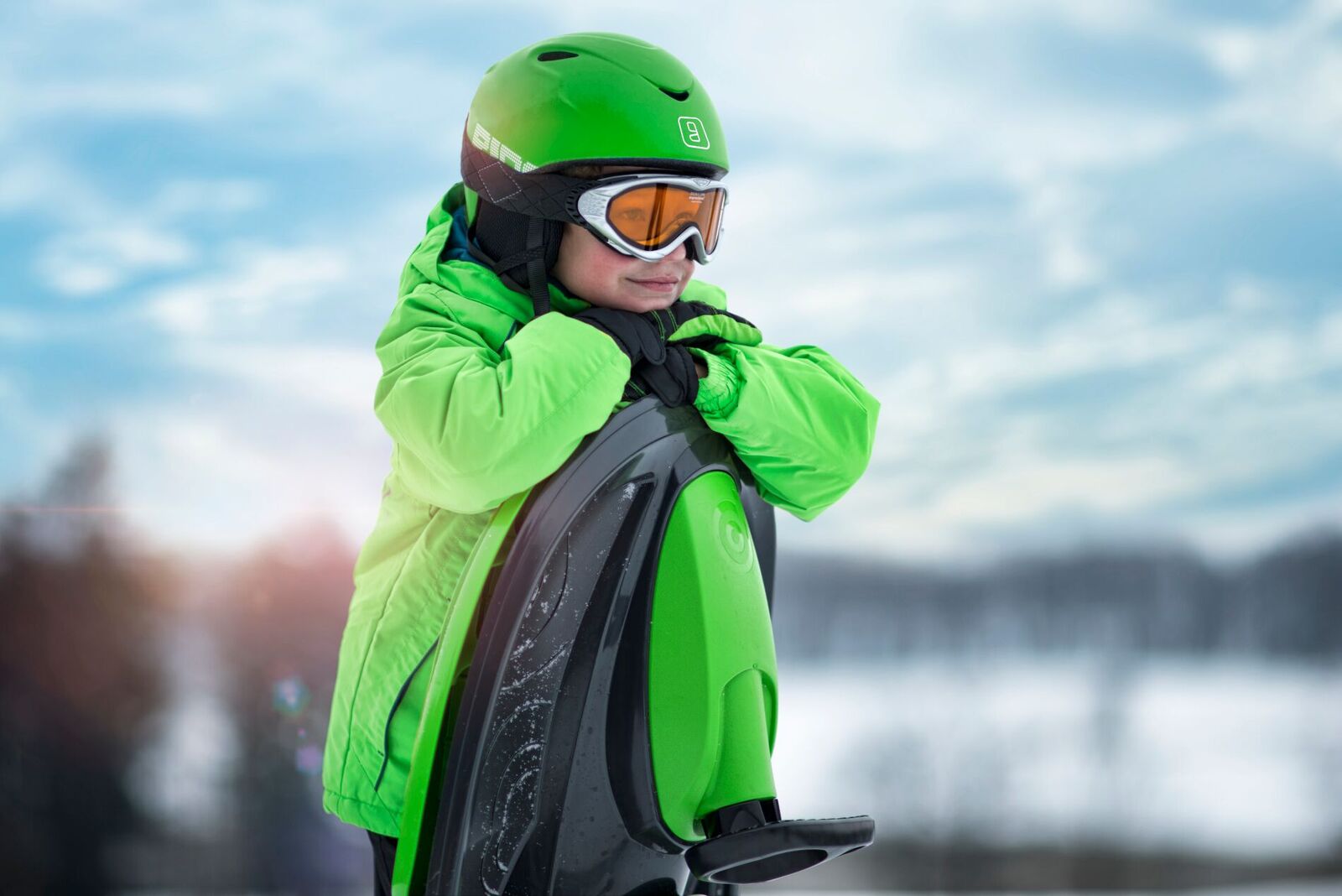 Санки "Стратос" отличаются низкой, гоночной посадкой, и при спуске с горки создается впечатление, что едешь по треку на мини-картинге.
