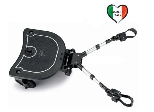 Подножка для второго ребенка Cam Basic дает возможность маме гулять с двумя маленькими детьми всего с одной коляской. Подножка подойдет для ребенка от 15 месяцев до 25 кг. Ребенок сможет в любое время подъехать на коляске, просто встав на подножку. Качественные колеса позволяют ездить с подножкой даже по пересеченной местности. Фиксаторы крепления подножки не закрывают колясочный тормоз.