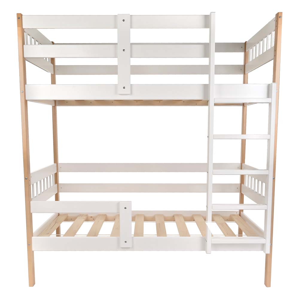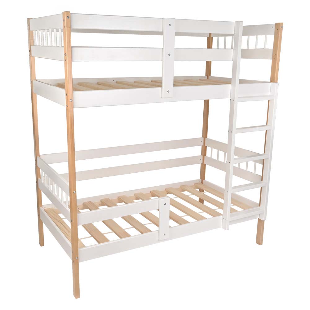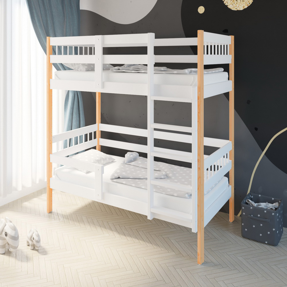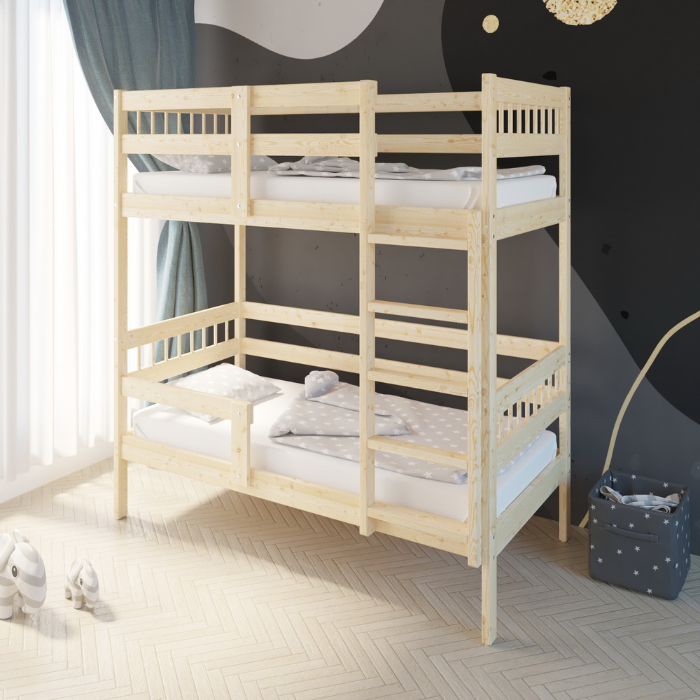 Подъем на верх осуществляется по удобной приставной лесенке, а сами кровати оснащены высокими бортиками, обеспечивающими безопасность.