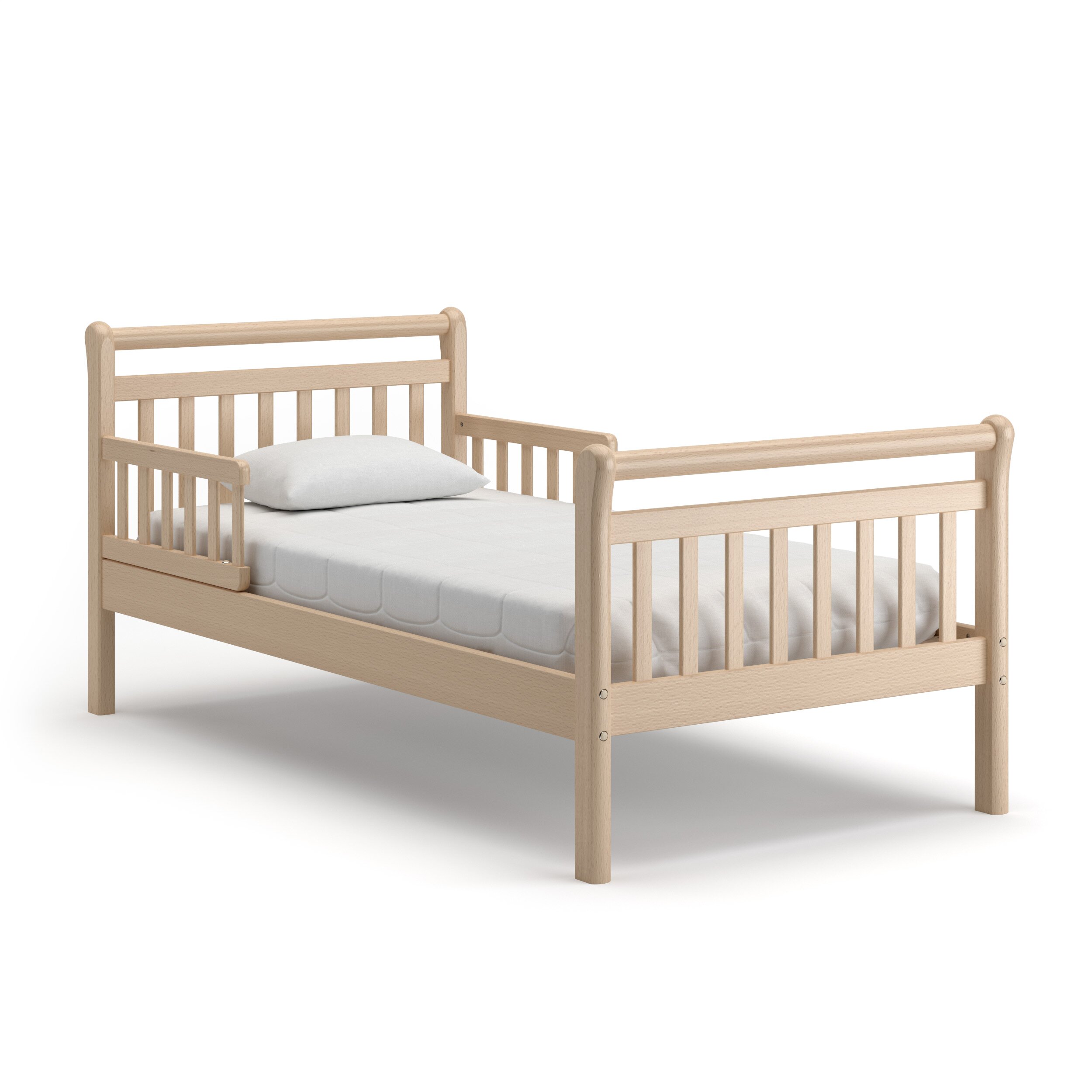 - Натуральный массив бука, а значит кроватка прочная, надежная и долговечная.