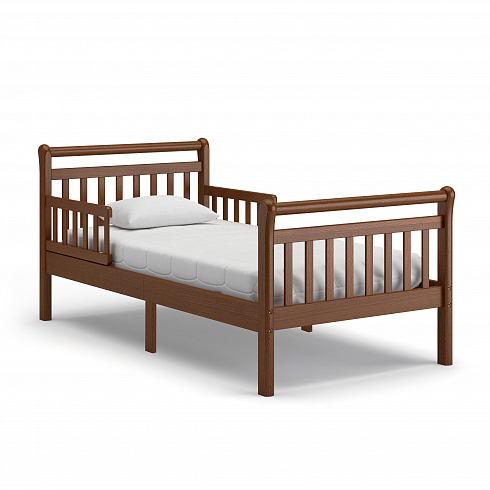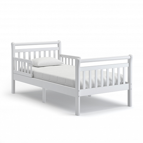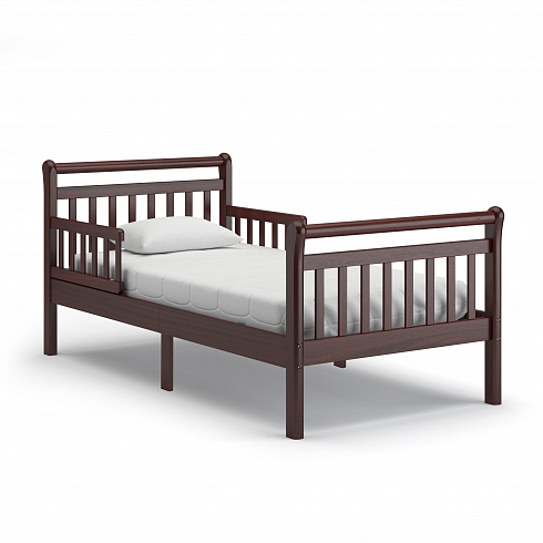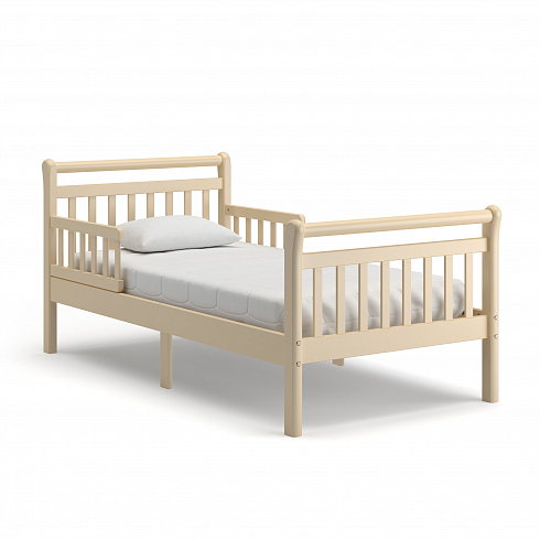 Кровать удобна как для малышей, начиная с трёхлетнего возраста, так и для детей-подростков. Особенностью конструктивного решения данной модели является наличие съёмных бортиков-ограничителей в головной части конструкции. Тем самым предотвращается возможность падения спящего ребёнка.
