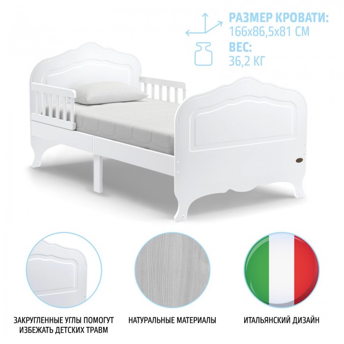 Подростковая кровать Nuovita Fulgore lungo (Нуовита Фулгоре Лунго) - красивая, элегантная кровать для ребенка от 3 лет с фигурными спинками. Кровать отличается надежностью, функциональностью и удобством для ребенка. Большое спальное место с реечным дном обеспечит правильное формирование позвоночника. Защитный бортик поможет ребенку привыкнуть спать во взрослой кровати.