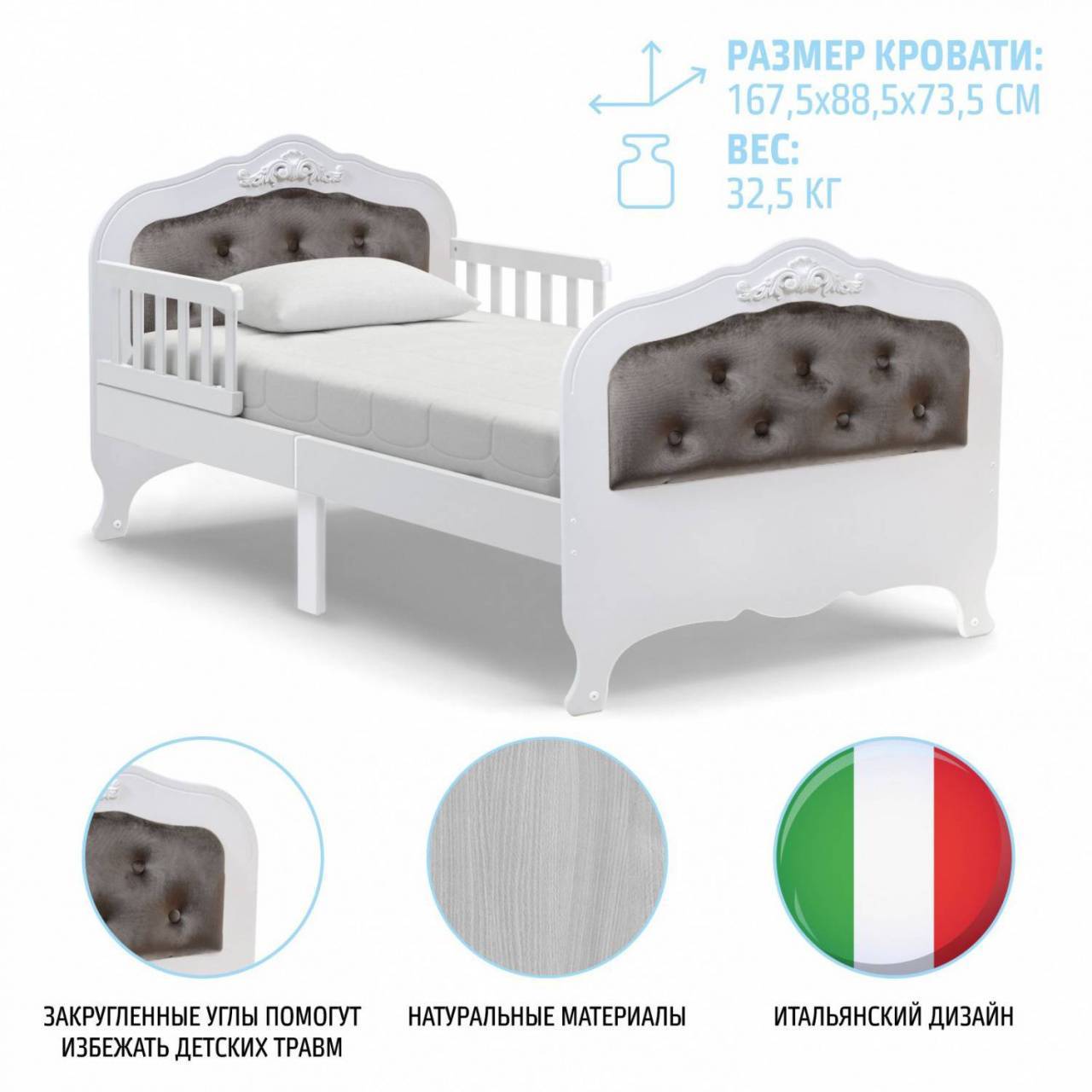 - Габариты подростковой кровати: 167.5х88.5х73.5 см