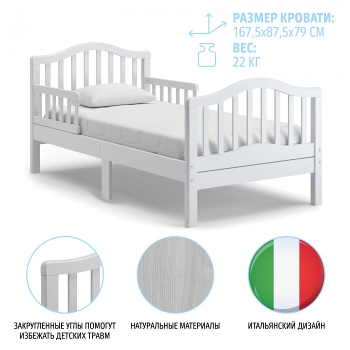 Подростковая кровать Nuovita Gaudio (нуовита гаудио) - создана для детей, начиная с трёхлетнего возраста и до достижения ими пятнадцати-шестнадцати лет. Конструкция выполнена в классическом стиле итальянского минимализма.