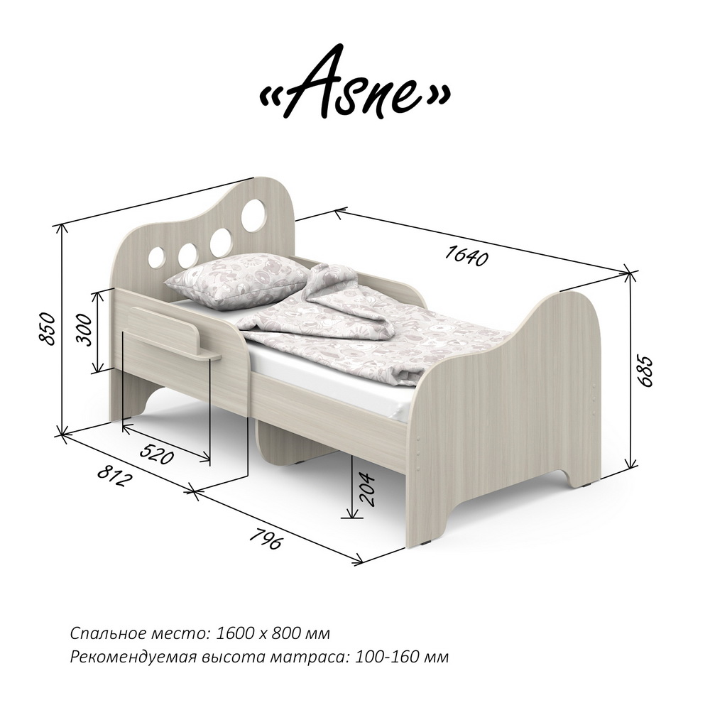 Подростковая кровать PITUSO ASNE (Питусо Асне) - дизайнерская кровать для ребенка от 3 лет. Необычный дизайн, удобный функционал и качественные материалы подарят ребенку комфортный сон. Кроватка имеет стандартное спальное место 160х80 см, что позволит пользоваться кроваткой долгое время. Кровать укомплектована бортиком, который защитит ребенка от ночных падений, научит спать во взрослой кровати и сделает спальное место уютнее и комфортнее. Удобная полочка пригодится для игрушек, бутылочки с водой или книжек.