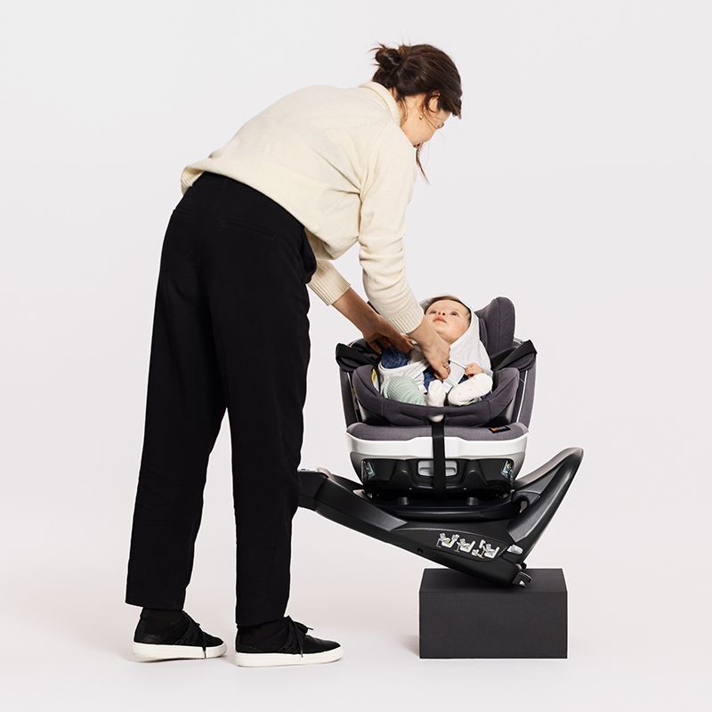 Младенцев нужно всегда перевозить лицом назад, поэтому BeSafe позаботились о том, чтобы чашу автокресла нельзя было случайно повернуть по ходу движения автомобиля раньше времени. Для этого база и вставка оснащены механизмом, который блокирует поворот сиденья на 360°, пока вы используете Baby Shell™.