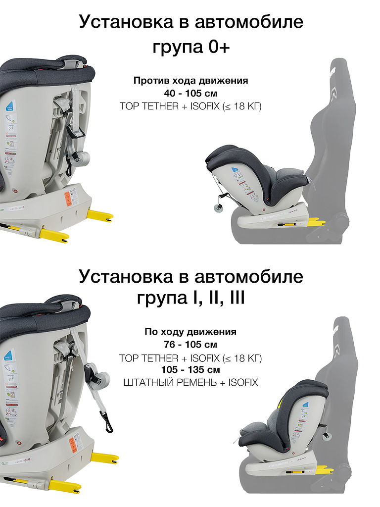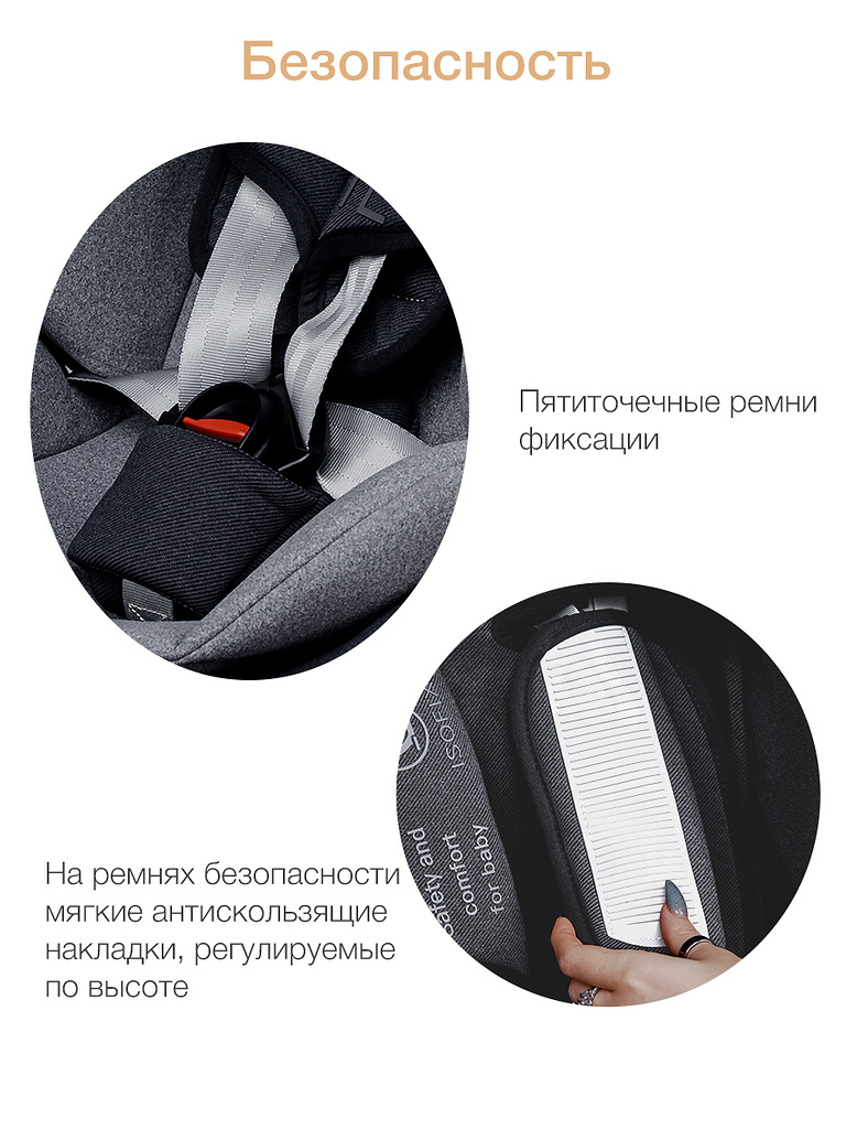 - 6 положений Isofix и якорное крепление Top Tether, автомобильные ремни