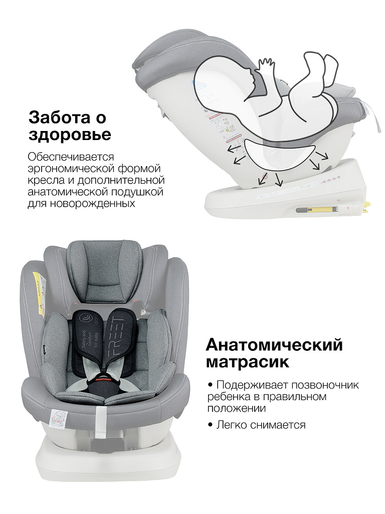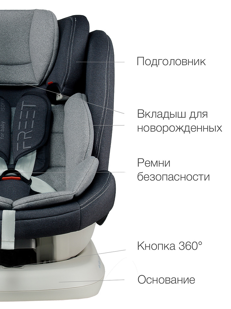 - В комплекте анатомический дышащий вкладыш, анатомическая подушка, мягкие накладки на внутренние ремни, мягкий подголовник.
