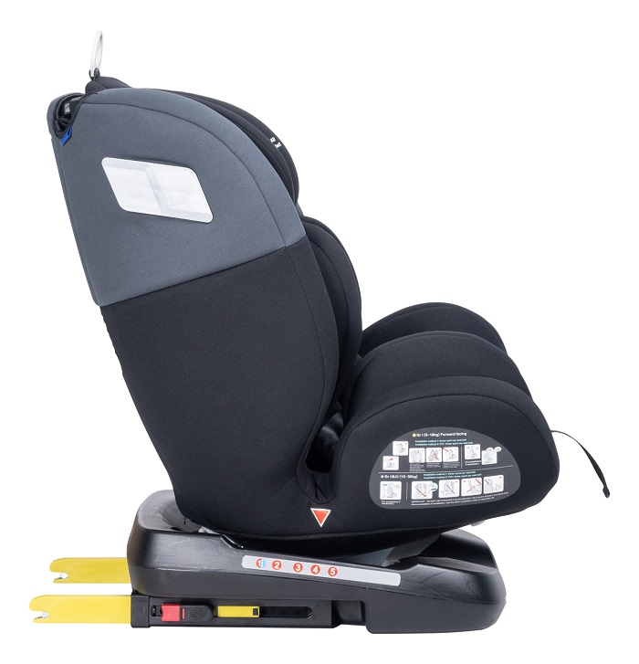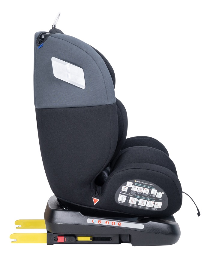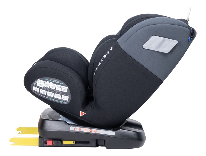 - Крепится в автомобиле с помощью системы IsoFix или штатных ремней безопасности и устанавливается по ходу движения автомобиля и против него, в зависимости от веса и возраста ребёнка.